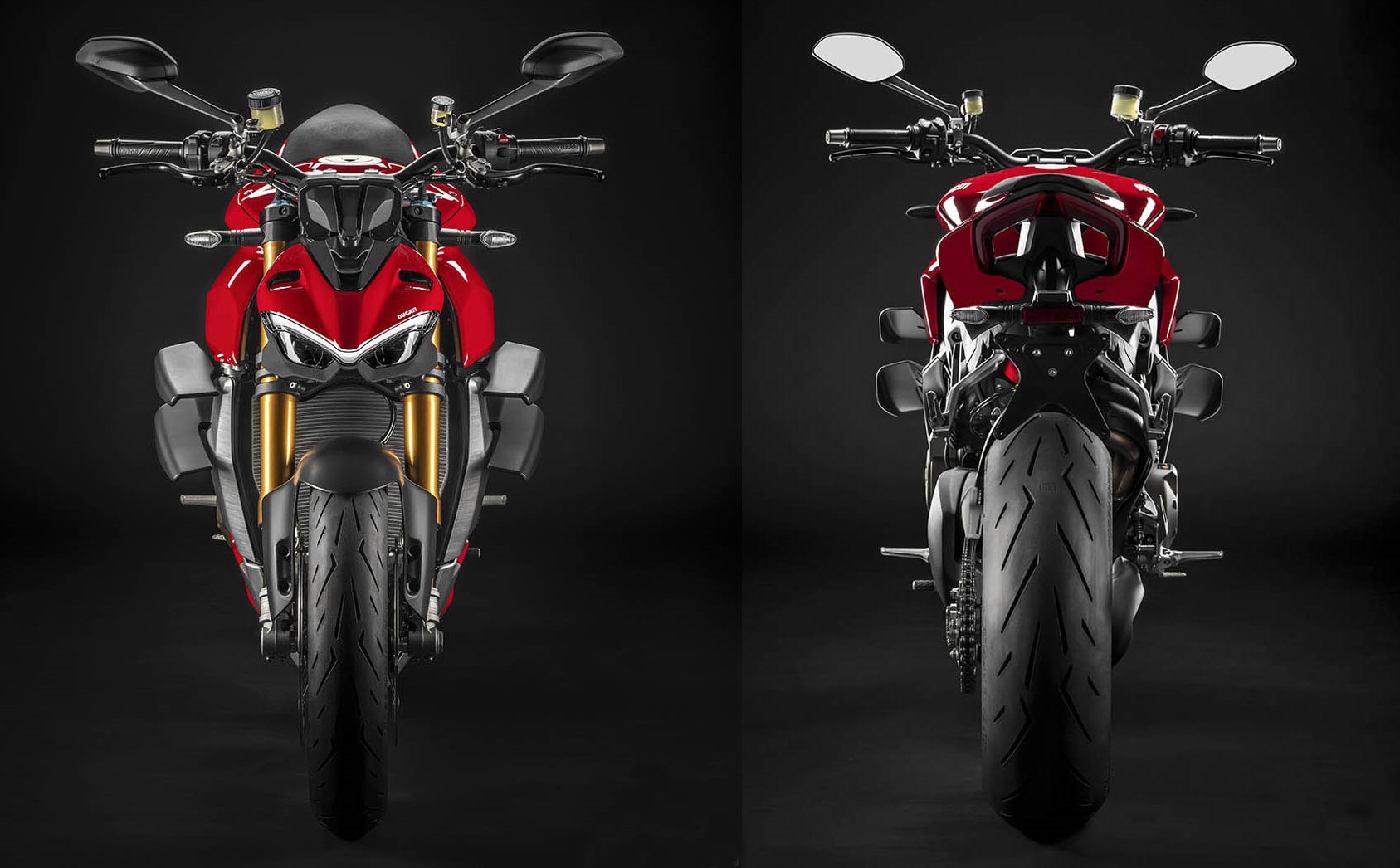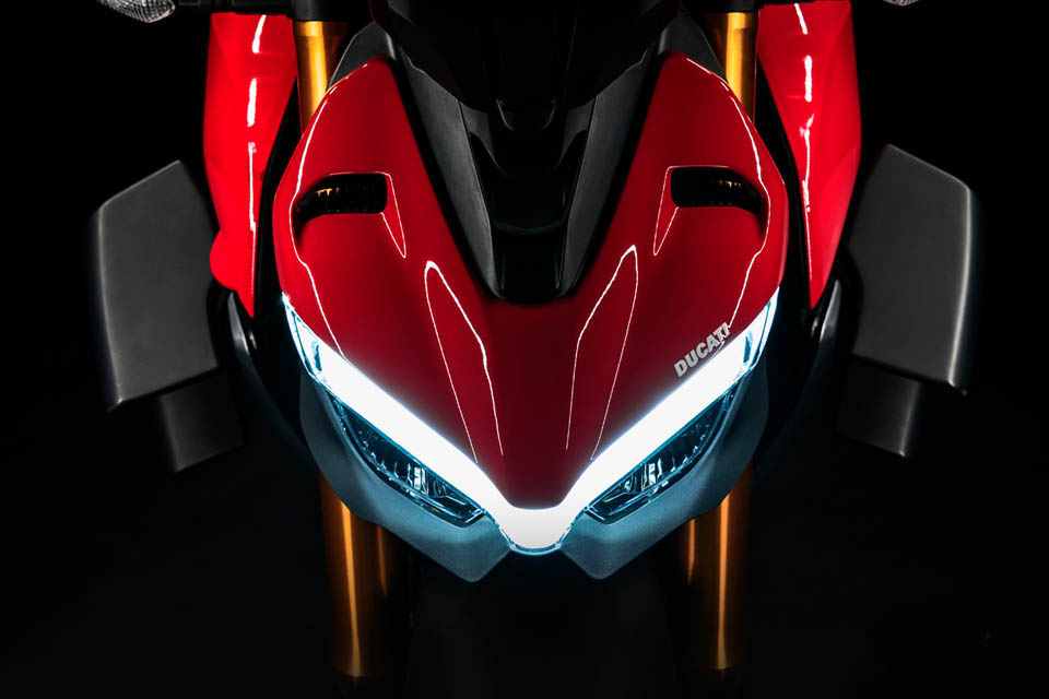 Streetfighter V4搭載一臺,1103cc排量的Desmosedici Stradale 90° V4發(fā)動機,采用與杜卡迪Motogp發(fā)動機相同的81mm缸徑,以42°的角度擺放。還擁有Counter-Rotating Crankshaft(反向曲軸),峰值馬力輸出高達208hp/12,750rpm,最大扭矩123Nm/11,500rpm,此外還可以選擇更換賽道專用的Akrapovic排氣系統(tǒng),可以將最大功率提升至217hp馬力,同時還能降低6kg的重量。
