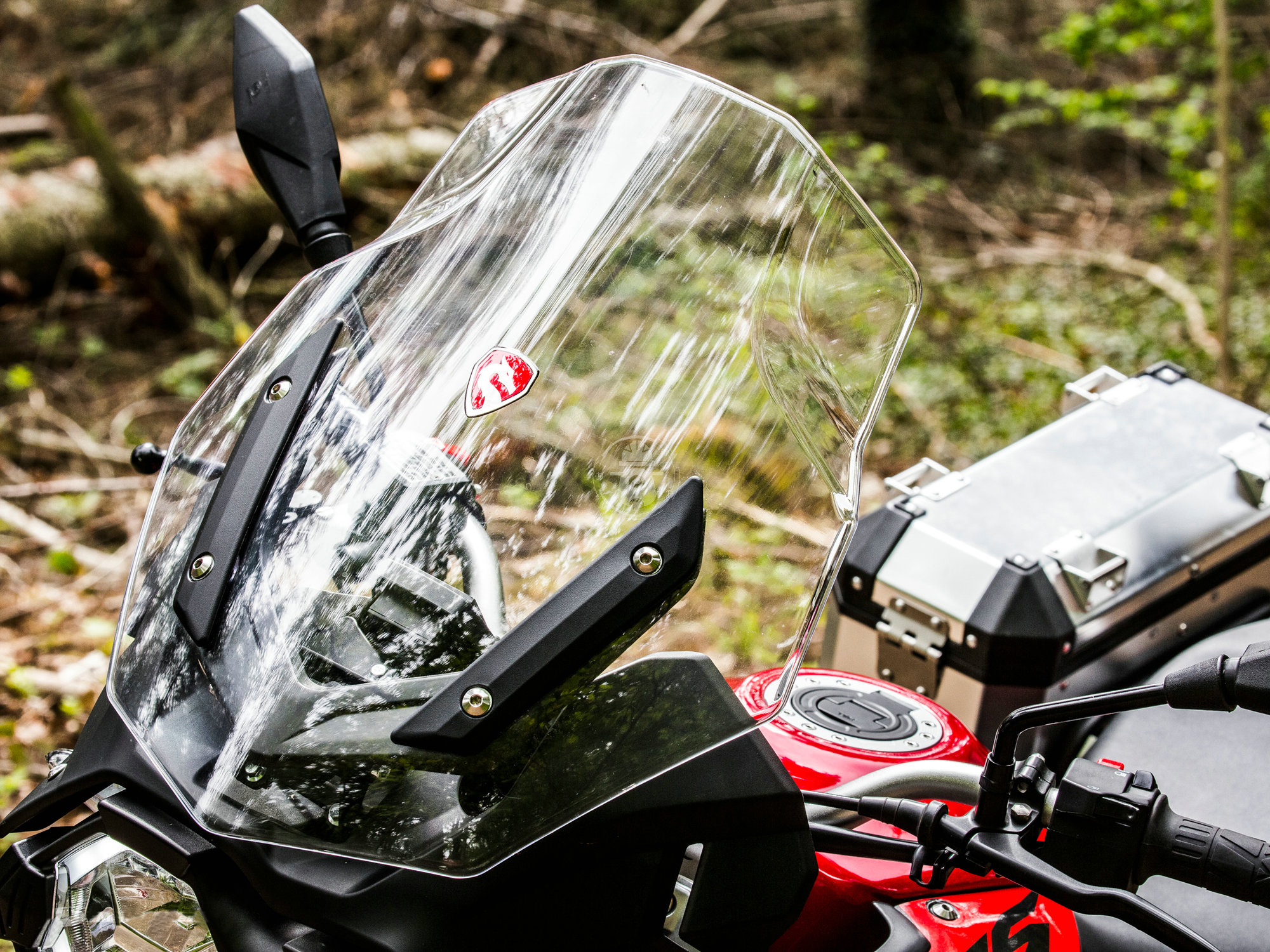 風(fēng)擋面積還不錯,不具備調(diào)節(jié)的功能,風(fēng)擋中間這個LOGO雖然不大,但是依然有些遮擋視線,其實完全可以把LOGO往風(fēng)擋的下部分移動,雖然可以自己把它揭掉,但是廠家應(yīng)該能考慮到這一點。