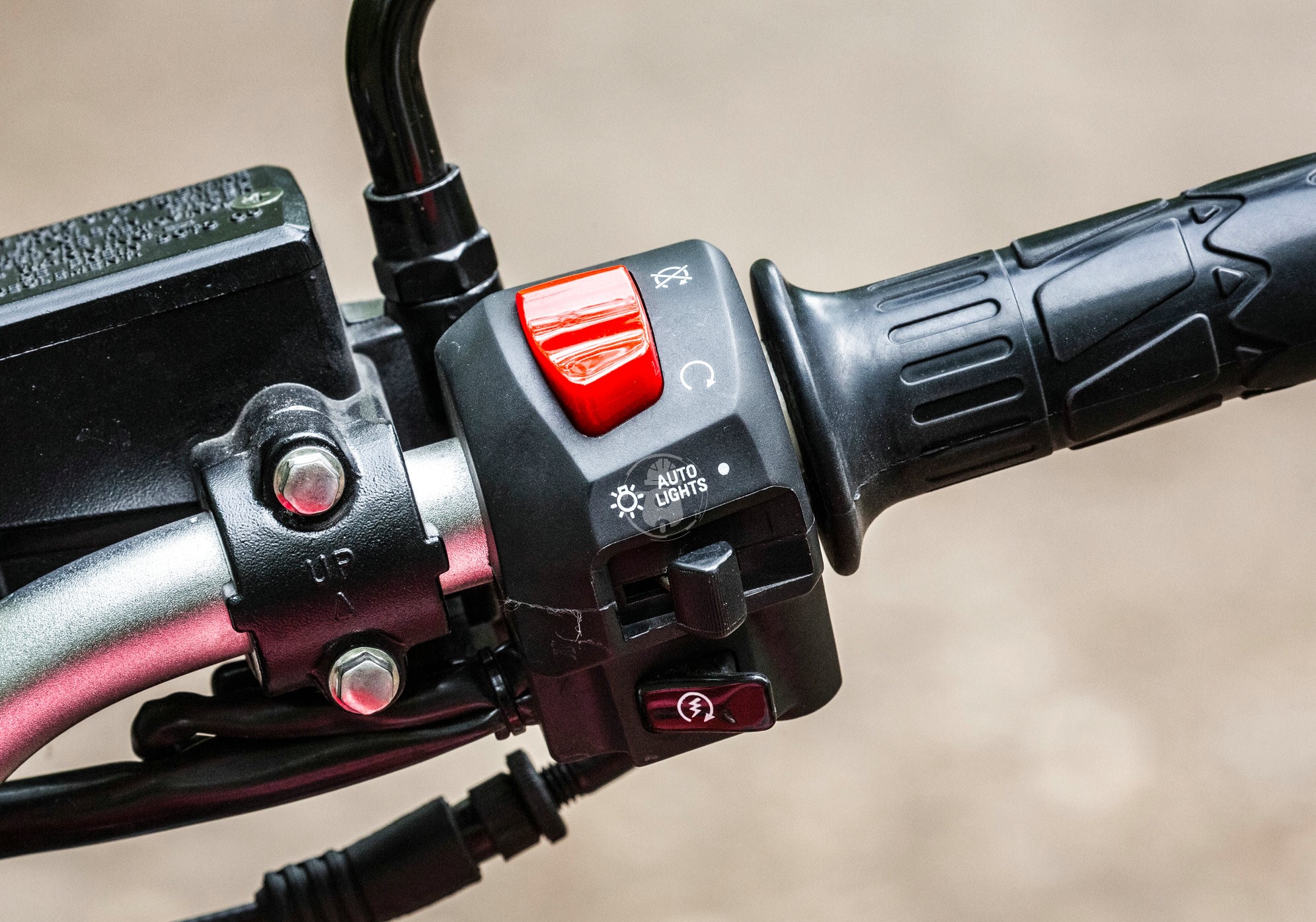 常規(guī)布局的手把按鍵,質(zhì)感與大多數(shù)通用件相差無幾,沒有什么好吐槽的,也沒有值得稱贊的。