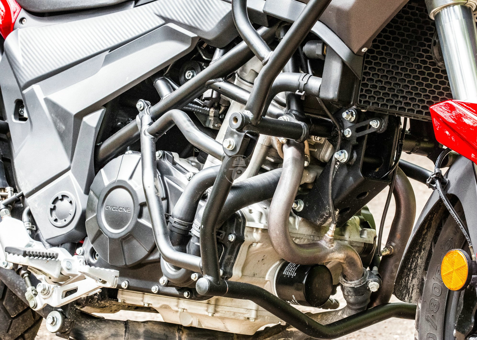 雖然說原廠配備了護杠,免去了后期加裝的煩惱,但是作為一臺拉力車型,沒有配備發(fā)動機下護板確實有點讓人疑惑,要知道在進行野外騎行的時候,拖底是比較常見的情況。