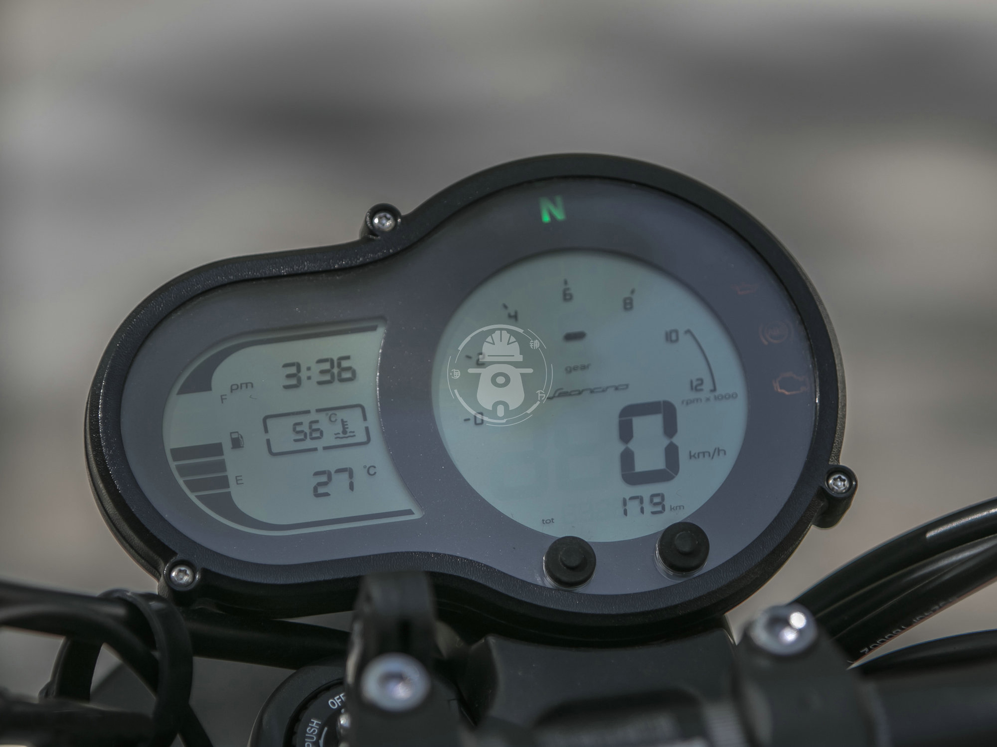 同樣使用了復(fù)古的圓形設(shè)計,左右分屏的全液晶顯示屏,由于是單色表底因此各種數(shù)值在陽光底下也能清晰可見。而且儀表盤的布局非常大氣,各種數(shù)據(jù)顯示非常齊全。右側(cè)的轉(zhuǎn)速表的辨識度可能不是很強(qiáng),其他地方的顯示都能夠令人滿意。
