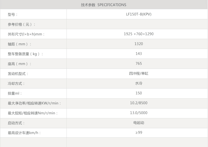 發(fā)動機方面,搭載NBD150單缸水冷發(fā)動機,最大功率10.2kW/8500rpm,最大扭矩13N·m/5000rpm,最高車速超過100km/h。發(fā)動機的輸出表現(xiàn)處于該級別的領(lǐng)先水平,用來拉動整備質(zhì)量僅有143Kg的車型顯得綽綽有余。