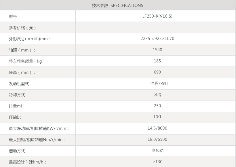 動力方面,搭載的升級版250V型雙缸發(fā)動機,做了更加運動化的調(diào)校,最大功率14.5kW/8000rpm,最大扭矩18N·m/6500rpm,最高車速超過130km/h。此外,KPV和V16S都將搭載力帆的車載智能終端機車衛(wèi)士,通過手機與力帆摩托APP建立機車互聯(lián),即可輕松查資訊暢享智能騎行。