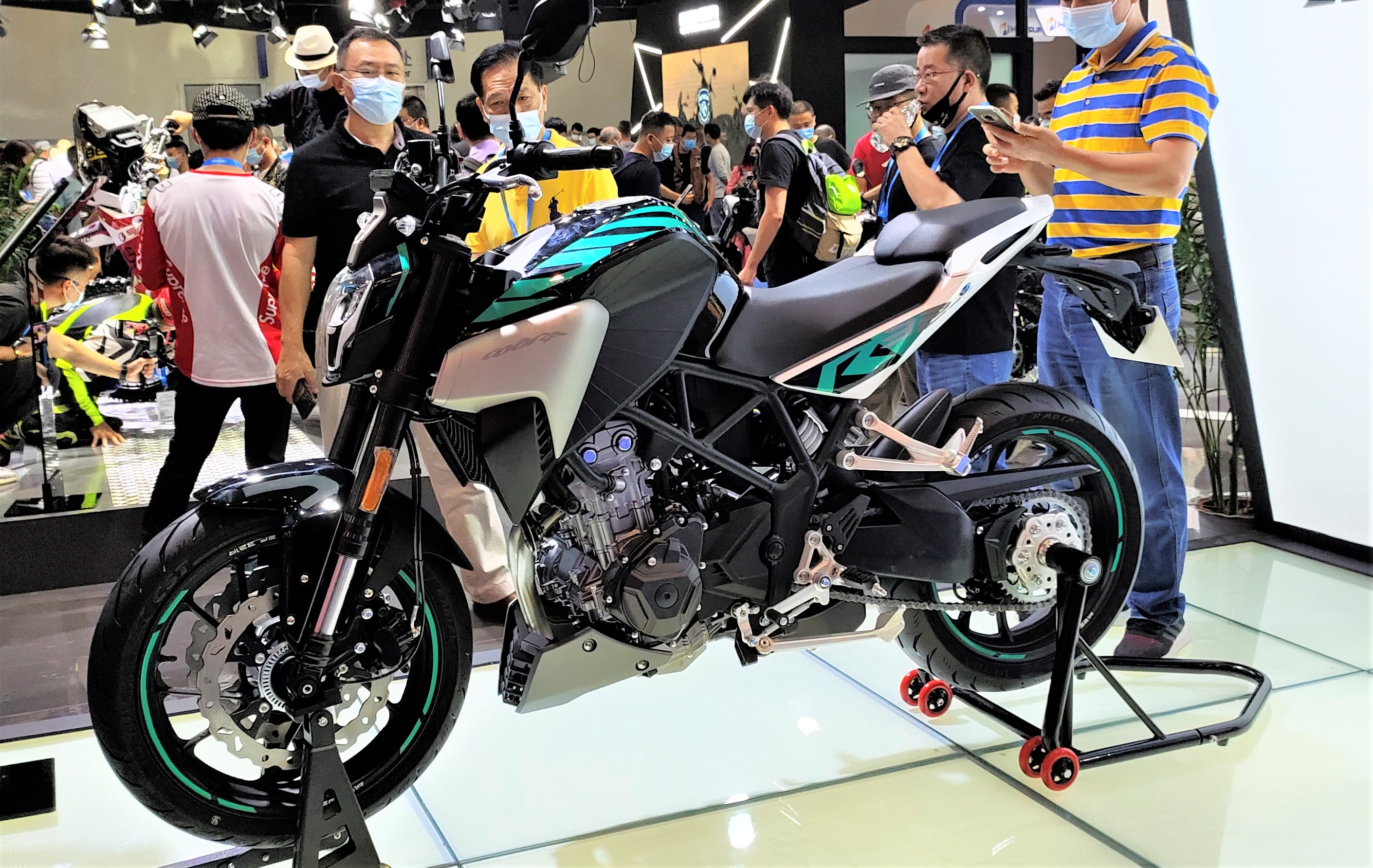 本次摩博會最具人氣車型之一,摩博會首日一整天都被圍繞的水泄不通,由此可見國賓摩托所帶來的的號召力。依托于國賓650打下的良好口碑和形象,1250TR-G再次將這個形象放大,另有KTM發(fā)動機的加持想不被注意都很難。此次展出,春風(fēng)并沒有公布其更多的信息,相關(guān)數(shù)據(jù)需要參考之前發(fā)布的CF1250J(公務(wù)版)。