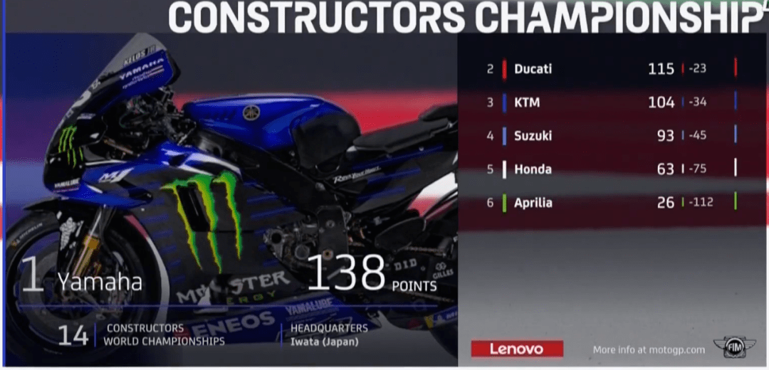 背靠背依舊在意大利的米薩諾賽道進(jìn)行,和上一站一樣,雅馬哈四位車手都進(jìn)入到了Q2,本田只有中上貴晶進(jìn)入到了Q2,而且,這一戰(zhàn)本田只有兩位車手出戰(zhàn),Cal和Stefan都因?yàn)橛袀麤]有跑正賽,KTM和杜卡迪情況也沒有好到那里去,這一戰(zhàn)雅馬哈的優(yōu)勢(shì)依舊很明顯。