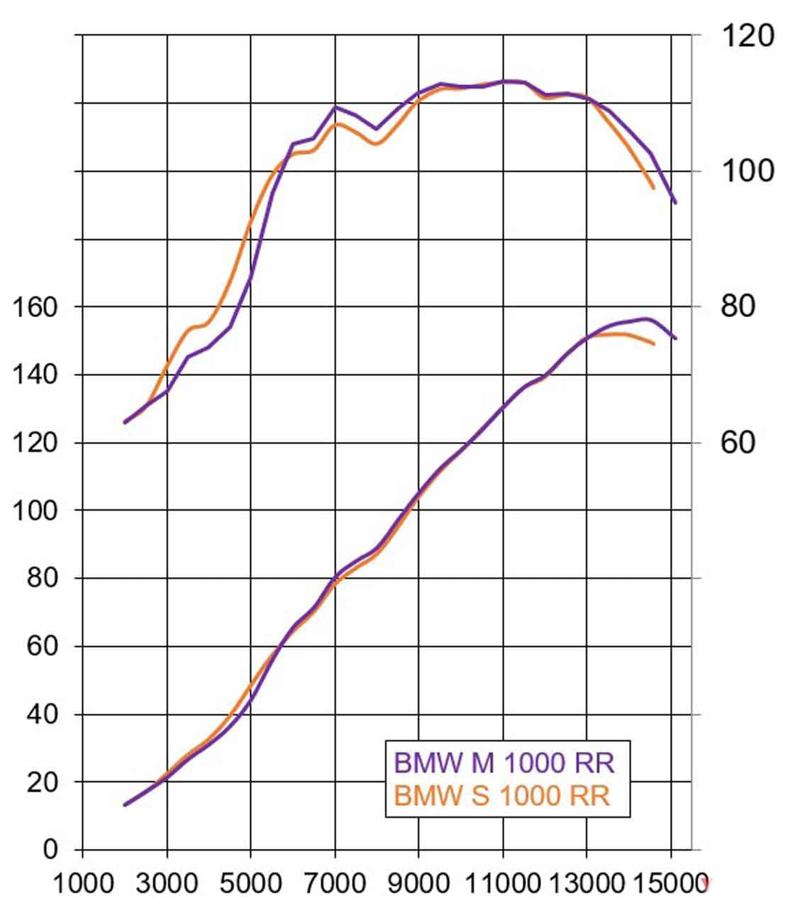 寶馬M1000RR的發(fā)動機基于S1000RR,但哪里從207ps / 135000rpm增加到212ps / 145000rpm,擁有5ps的功率提升。最大轉(zhuǎn)速為14600 rpm→15100 rpm,并且在約6000rpm或更高的轉(zhuǎn)速范圍內(nèi),功率和扭矩均超過S1000RR。