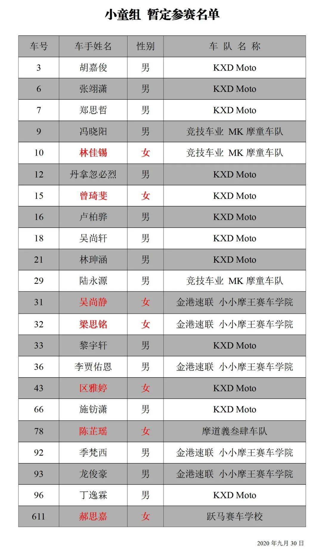 目前,各組別已開放參賽者報(bào)名。而在節(jié)前獲得的第三回合已報(bào)名參賽車手名單中,小童組是最踴躍的組別,已報(bào)名(包括之前已經(jīng)報(bào)名參加全年四個(gè)回合比賽的車手)參賽的小車手達(dá) 22 人(每個(gè)組別的參賽者數(shù)量上限為 25 人),其中包括了多達(dá)七位的小女孩。