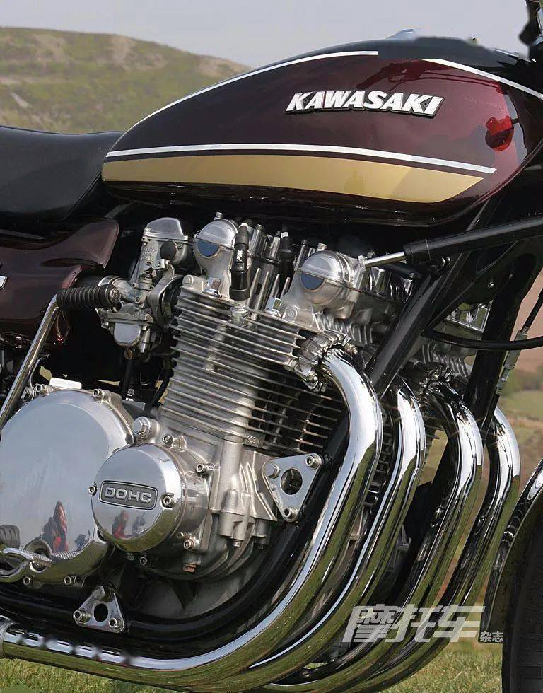 1970年,川崎啟動(dòng)了Z1研發(fā)項(xiàng)目 (研發(fā)代號(hào)T103),雖然動(dòng)力裝置與搶先一步推出的本田CB750相同,都是并列四缸四沖程發(fā)動(dòng)機(jī),但是排量擴(kuò)大到903mL;更令人吃驚的是,不同于CB750的SOHC氣門機(jī)構(gòu),Z1配置了當(dāng)時(shí)罕見的DOHC氣門機(jī)構(gòu),實(shí)現(xiàn)了從低轉(zhuǎn)速到高轉(zhuǎn)速范圍內(nèi)的高性能輸出。這是川崎第一次嘗試在量產(chǎn)型摩托車上采用DOHC氣門機(jī)構(gòu),當(dāng)時(shí)國際范圍內(nèi)采用DOHC氣門機(jī)構(gòu)的量產(chǎn)型摩托車同樣屬于鳳毛麟角。這項(xiàng)當(dāng)時(shí)流行于GP大獎(jiǎng)賽的賽車技術(shù),讓Z1獲得驚人的動(dòng)力,可以突破200km/h的最高速度,成為當(dāng)時(shí)紅極一時(shí)的超級(jí)摩托車。