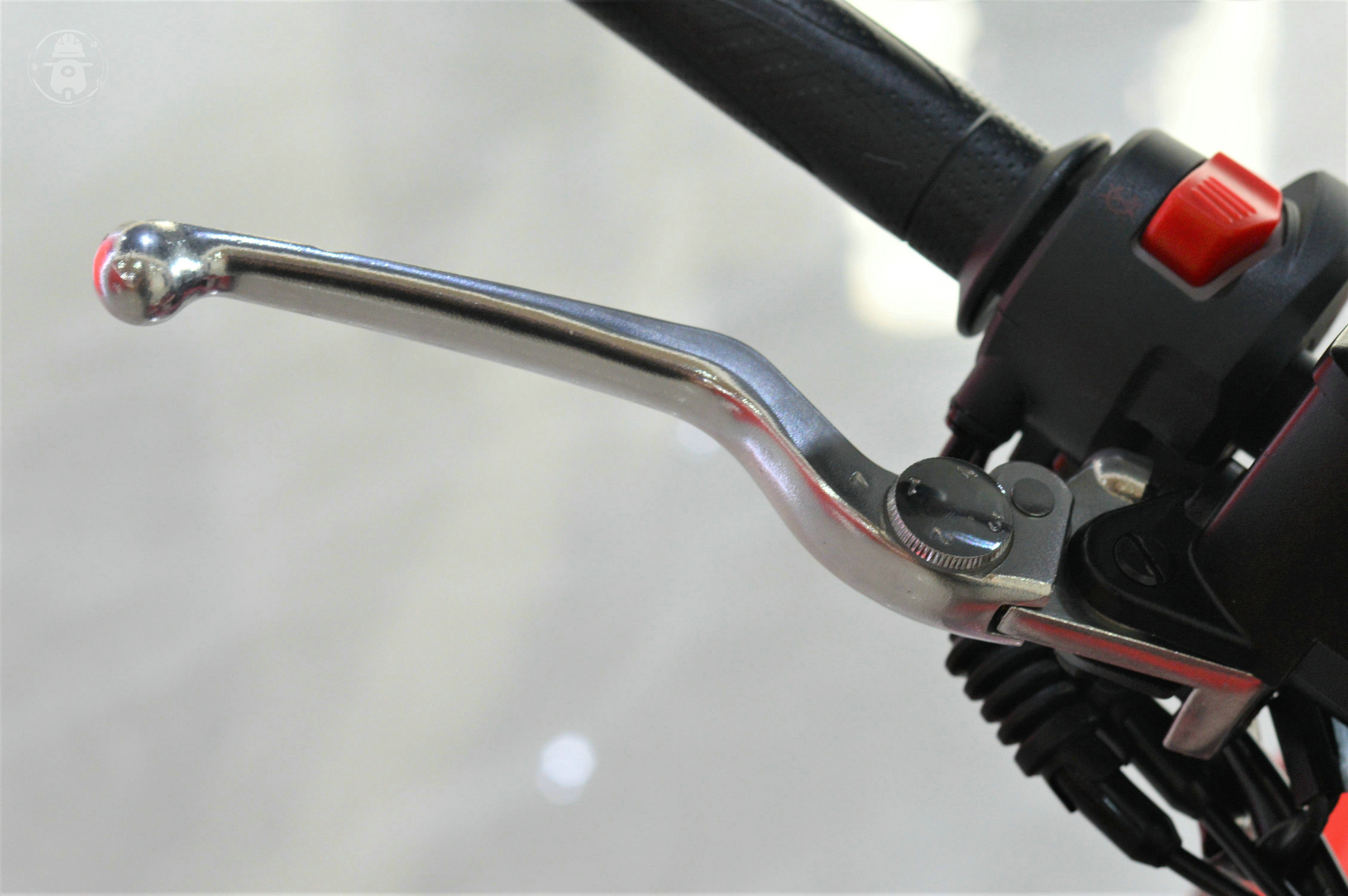 雙油門(mén)線誠(chéng)意滿滿,前剎車(chē)牛角有四個(gè)角度可調(diào),離合拉桿則沒(méi)有這個(gè)功能。