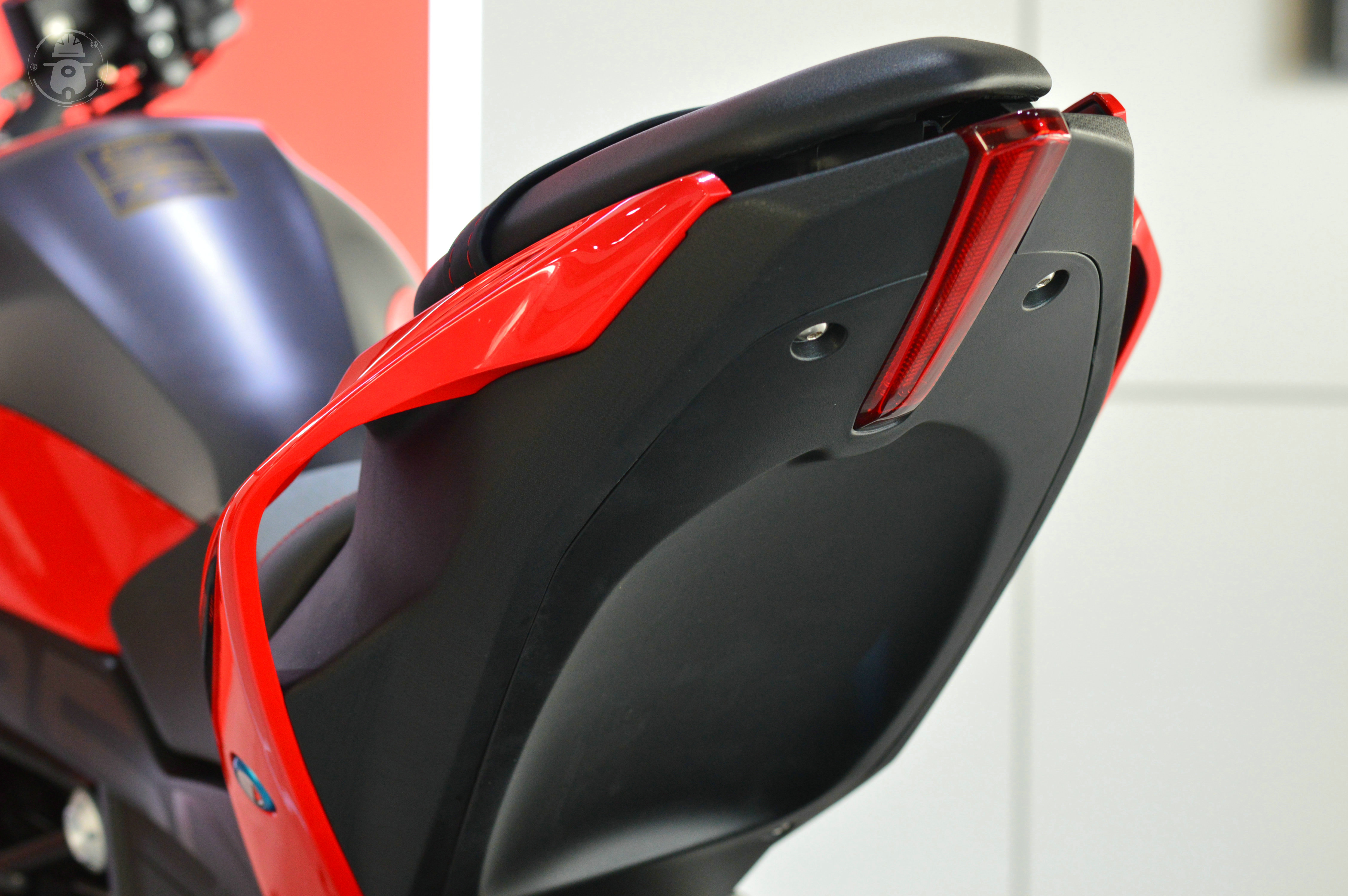 后轉(zhuǎn)向燈集成在牌照框上,是廠家在實(shí)用性和美觀之間有所取舍的結(jié)果,但是擋泥板的效果確實(shí)也還不錯(cuò)。