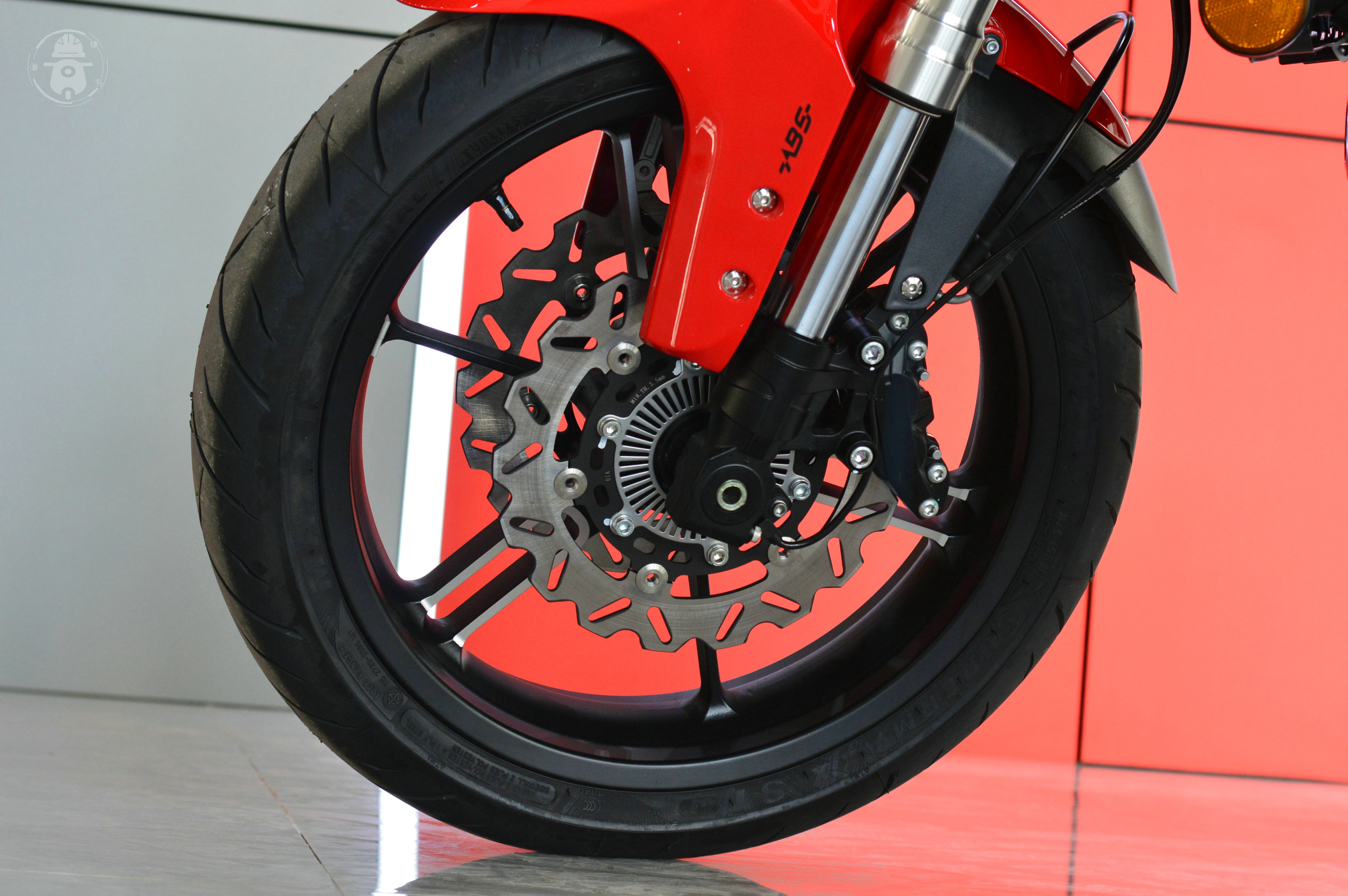 120/70ZR17前輪,160/60ZR17的后輪,配備瑪吉斯的半熱熔運(yùn)動(dòng)輪胎,抓地力不錯(cuò)壓彎磨腳踏可以非常從容。