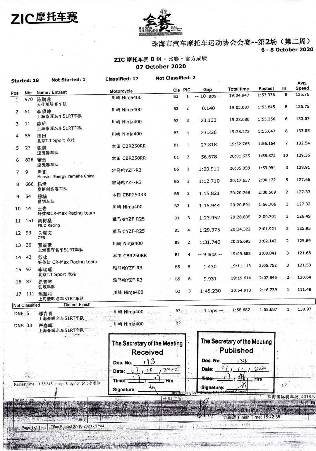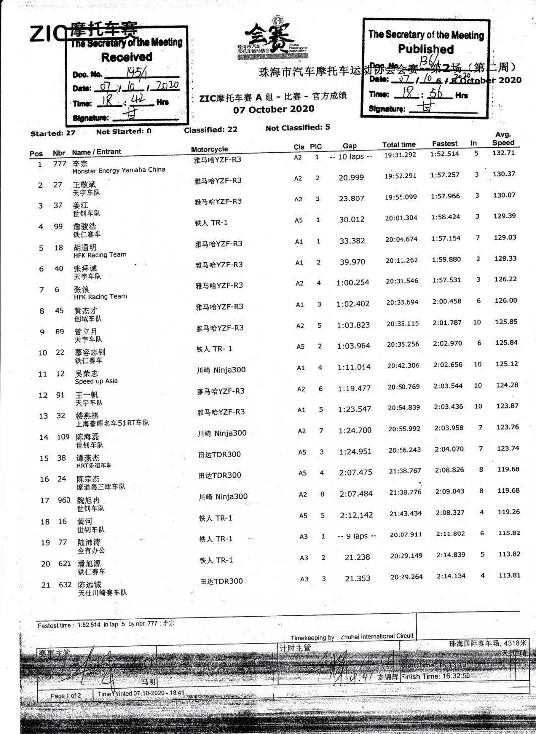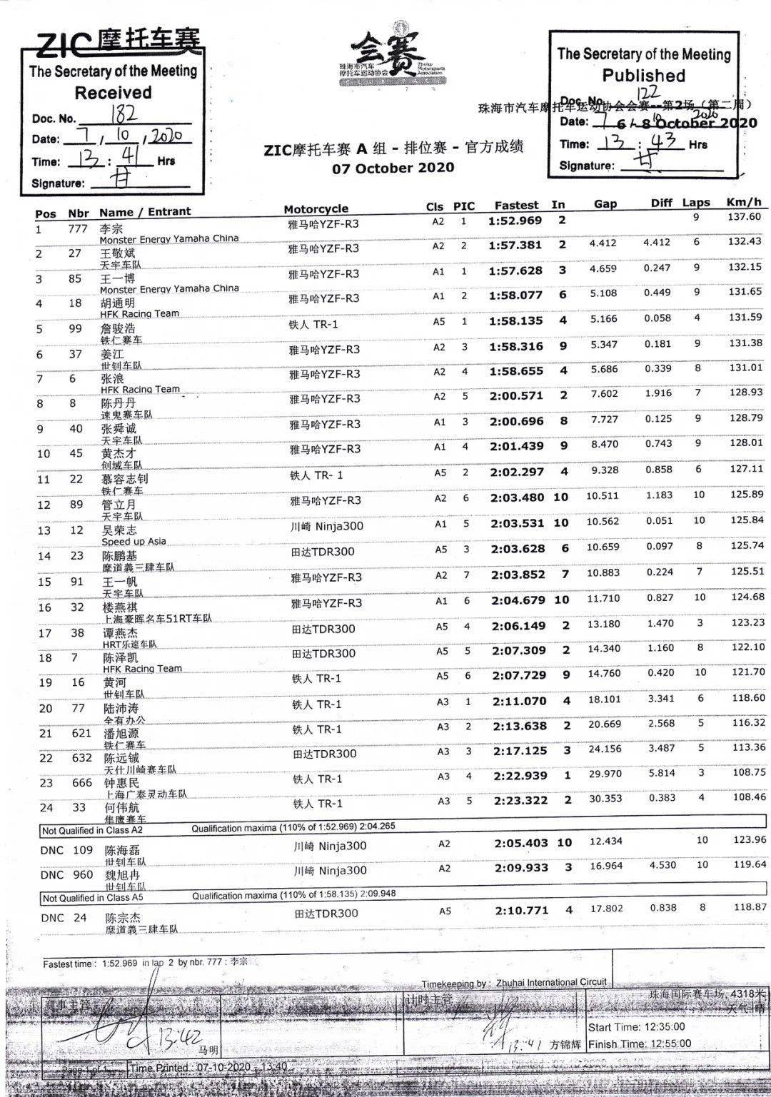 最終,李宗輕松拿下了全場的第一,王敬斌獲得了全場第二,37 號(hào)車的姜江(A2 組)獲得了第三。A2 組包攬了全場的前三。