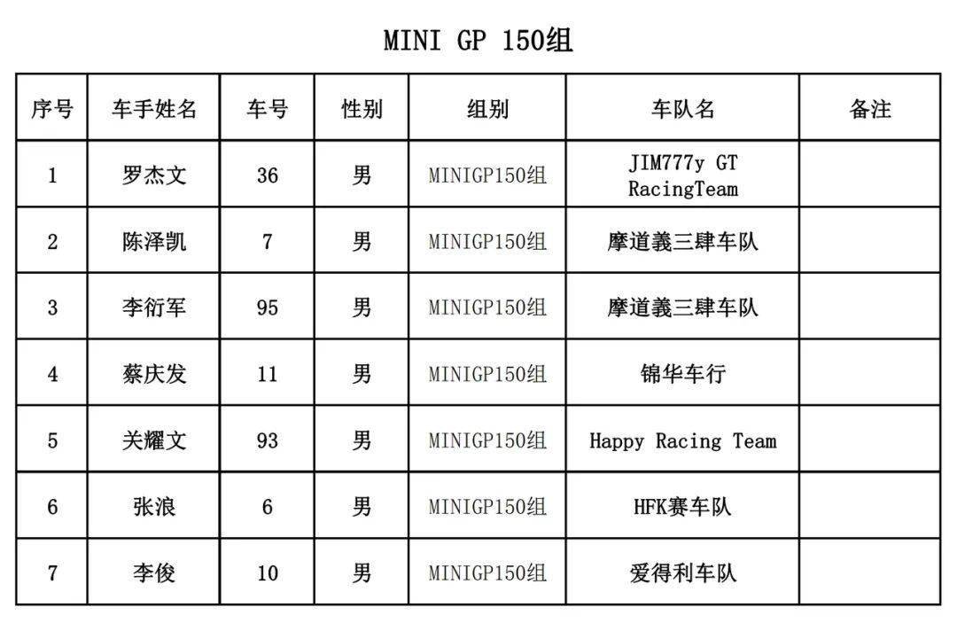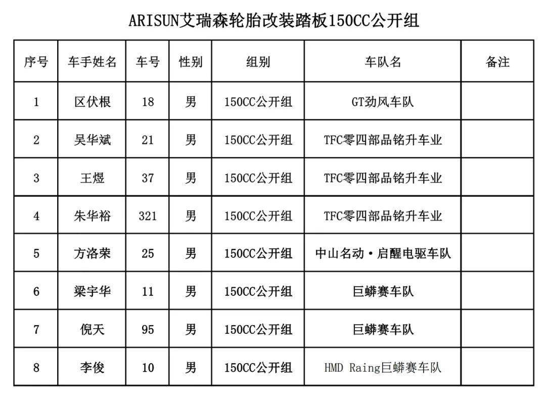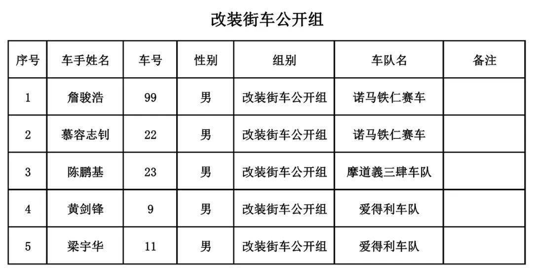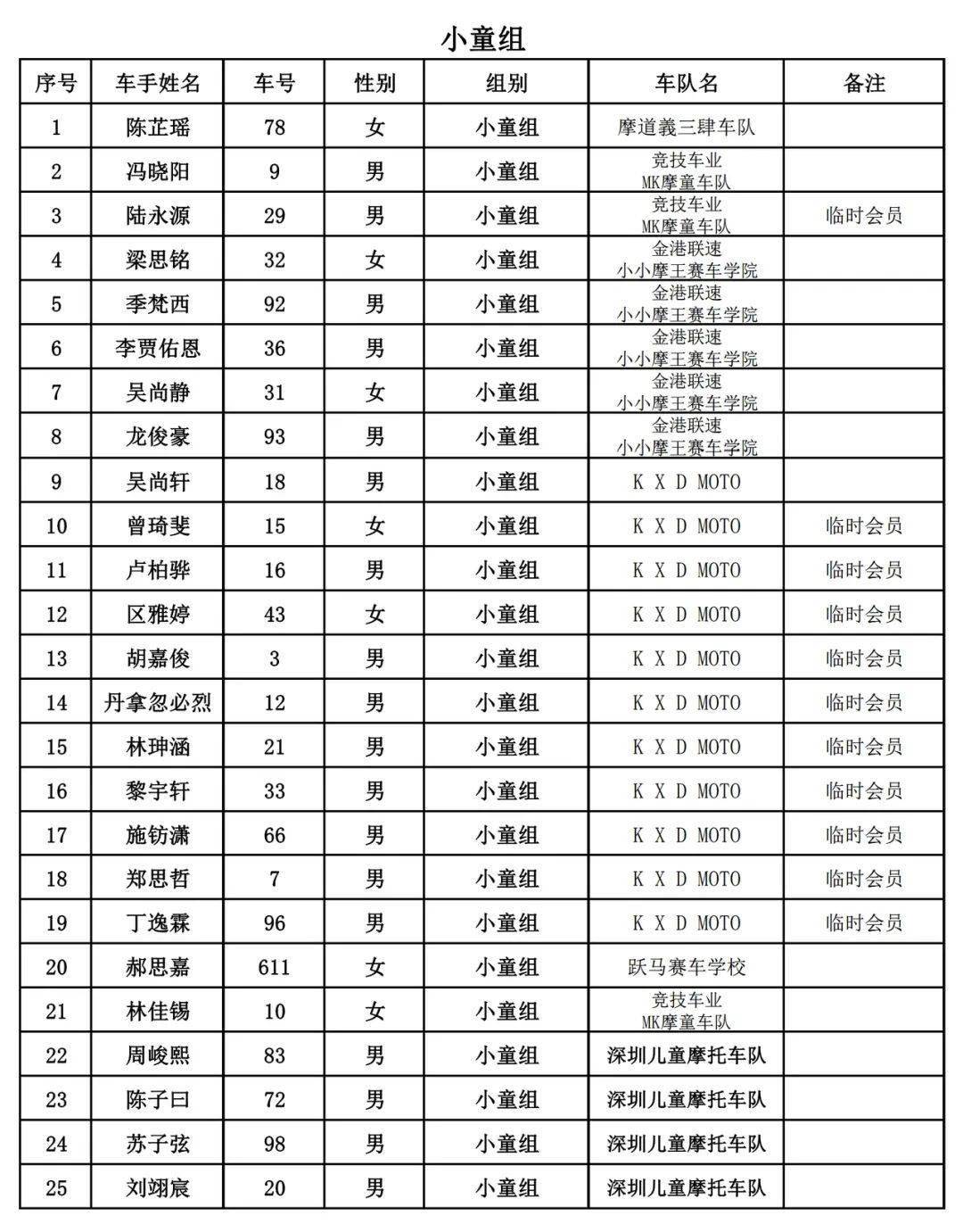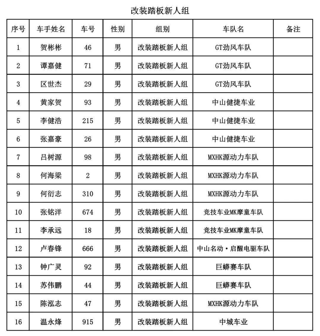 下面的圖片,三水森林賽車會(huì)摩托車大賽 偉業(yè)達(dá)杯、2020 年度第三回合,各組別的參賽名單。