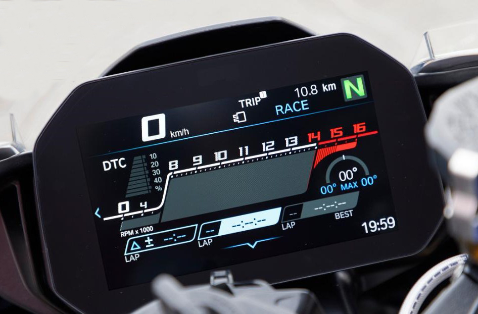 電子配置例如:Dynamic Traction Control,可調較的Wheelie Control,ABS Pro (Cornering ABS),Hill Start control,配合六軸IMU令這臺公升級猛獸更容易使用。駕駛模式除了Rain / Road / Dynamic /Race之外,還可以有Pro modes模式,分別是Race Pro 1-3,就是讓車主自己調整各種參數(shù)力度。隨Pro modes附送的還有Launch control讓彈射起步更加容易。
