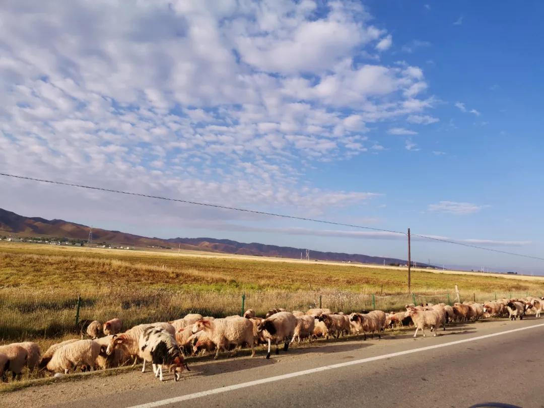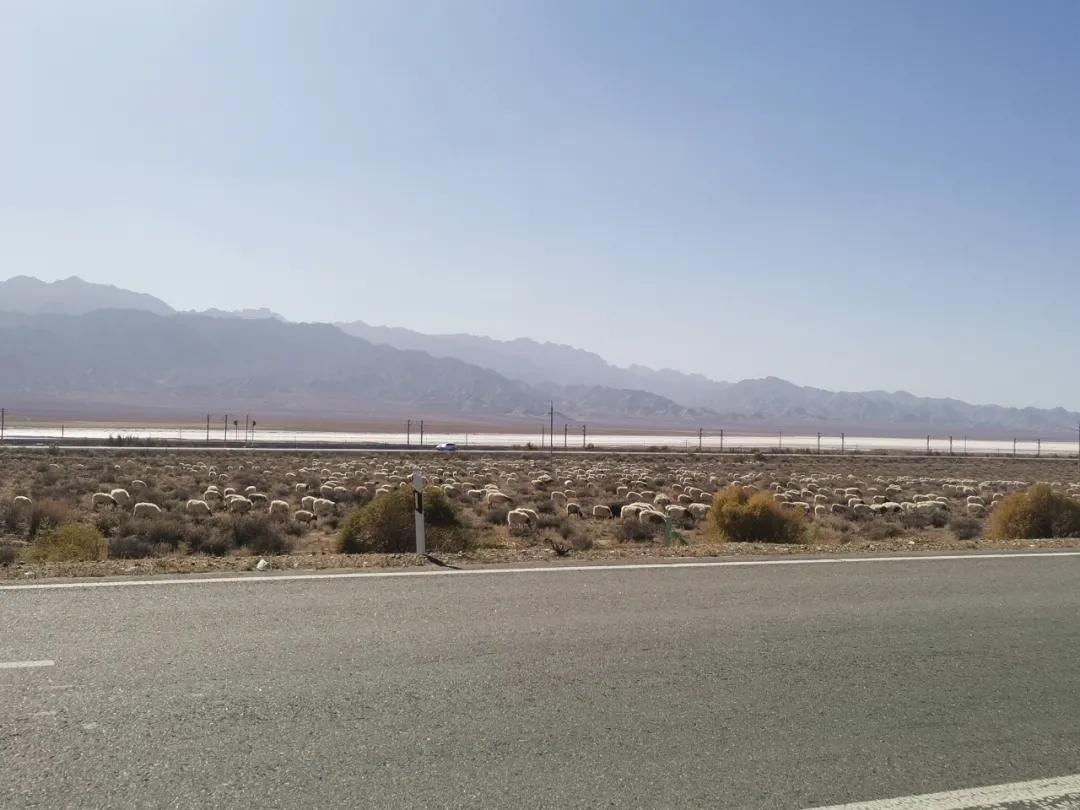 這一段的高速和我們?nèi)粘S龅降耐耆灰粯?,是一條獨(dú)立的雙車道單行線,間隔十多米的荒地是一條反方向的并排單行線。這樣的高速也非常簡(jiǎn)單,和一般的國(guó)道差不多,沒(méi)有護(hù)欄,有些地方還有分岔路,鏈接旁邊的土路,這也就意味著,有小概率會(huì)遇到橫穿馬路的車,或動(dòng)物。比如我們就遇到了羊群以及看護(hù)羊群的藏獒。