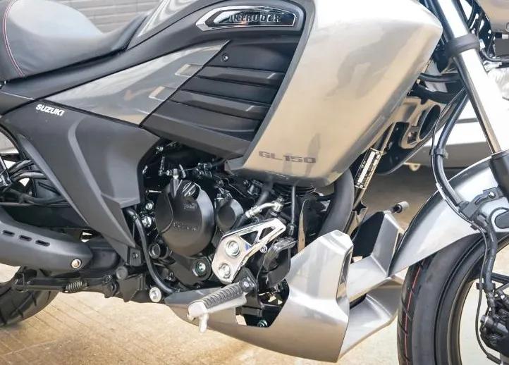 這是鈴木入侵者Intruder M1800R,酷道155在印度的名字就叫入侵者155,是Intruder家族排量最小的成員,但依舊能在它的身上看到老大哥的身影,像如出一轍的修長(zhǎng)燈罩,飽滿的車(chē)身輪廓以及線條延伸到坐墊,渾然一體的油箱造型,這么看來(lái)酷道155的造型設(shè)計(jì)還是跟國(guó)際接軌的。