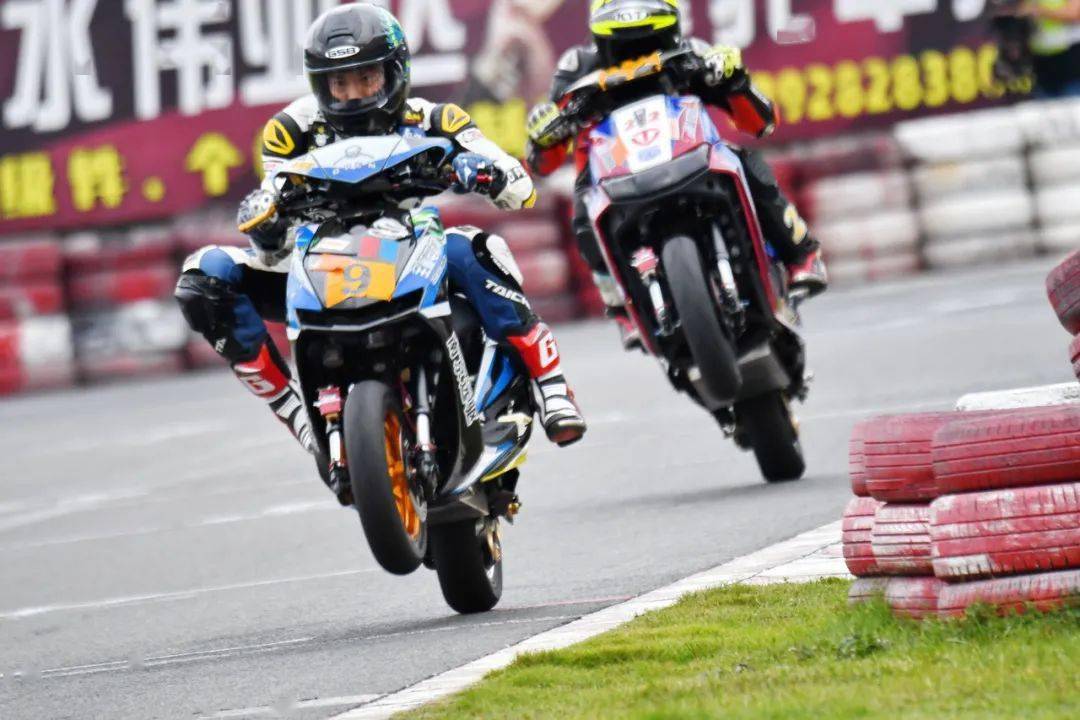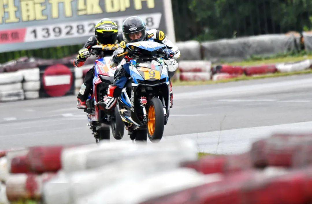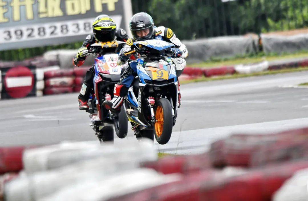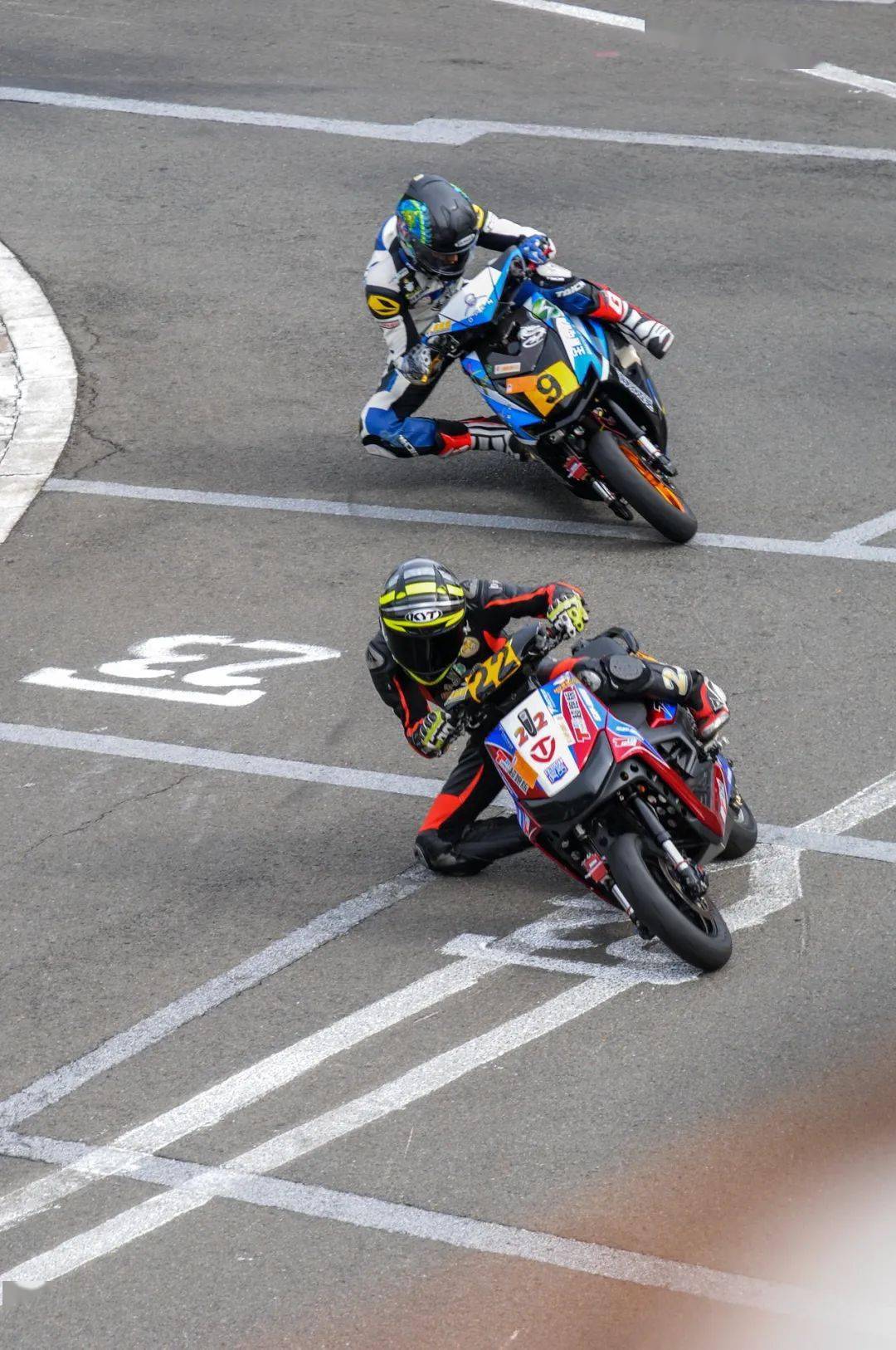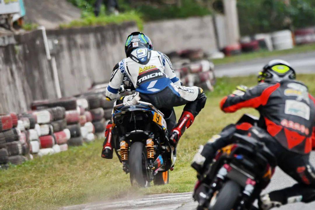 后面,黃劍鋒、慕容志釗則有過一翻的反復(fù)爭(zhēng)奪。電機(jī)高速轉(zhuǎn)動(dòng)之下的獨(dú)特聲響,以及車體組件、防護(hù)裝備與地面快速磨擦之聲,相映著賽道上的激烈追逐。而車手狂起狂落的扭油動(dòng)作,傳遞到賽車之后、讓前輪的不斷翹起,也反映著奉獻(xiàn)了一場(chǎng)激戰(zhàn)的兩位車手,斗志旺盛之下、已經(jīng)顧不上電動(dòng)車油門操控原本所需要的細(xì)膩(這是對(duì)于普通駕駛者來說),只想著把賽車在瞬間推向極限、奮勇向前。