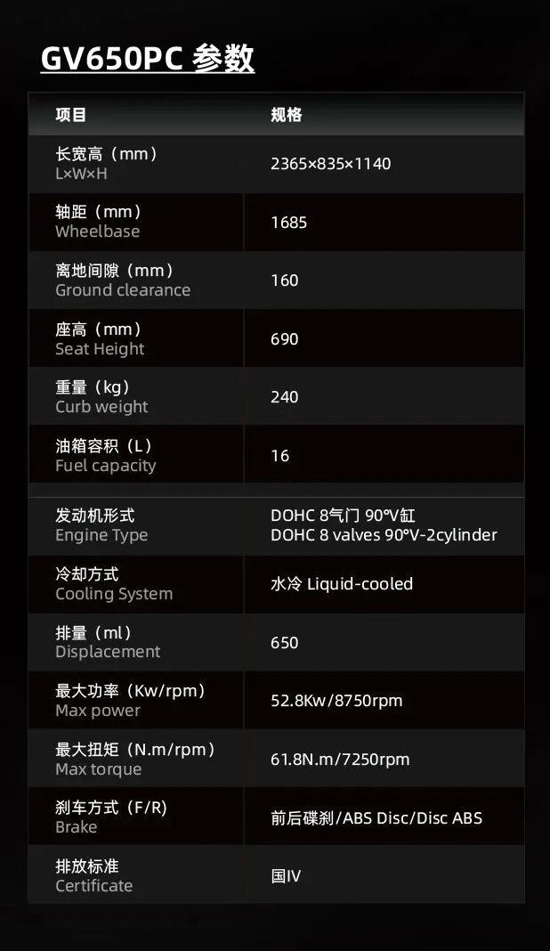動(dòng)力方面是這臺(tái)車最大的看點(diǎn)之一,GV650P搭載的是KR自行研發(fā)的,647cc排量水冷8個(gè)氣門、90度夾角的V型雙缸發(fā)動(dòng)機(jī),采用電子燃油噴射系統(tǒng)供油。最大功率達(dá)到了52.8kw/8750rpm,最大扭矩61.8N.m/7250rpm,根據(jù)相關(guān)測(cè)試,0-100km/h加速時(shí)間僅為4.9秒,超越同級(jí)別的很多車型,比如川崎小火神(45kw),再加上售價(jià)方面占據(jù)較大優(yōu)勢(shì),而在如今國產(chǎn)之后的價(jià)格就更加讓人期待了。