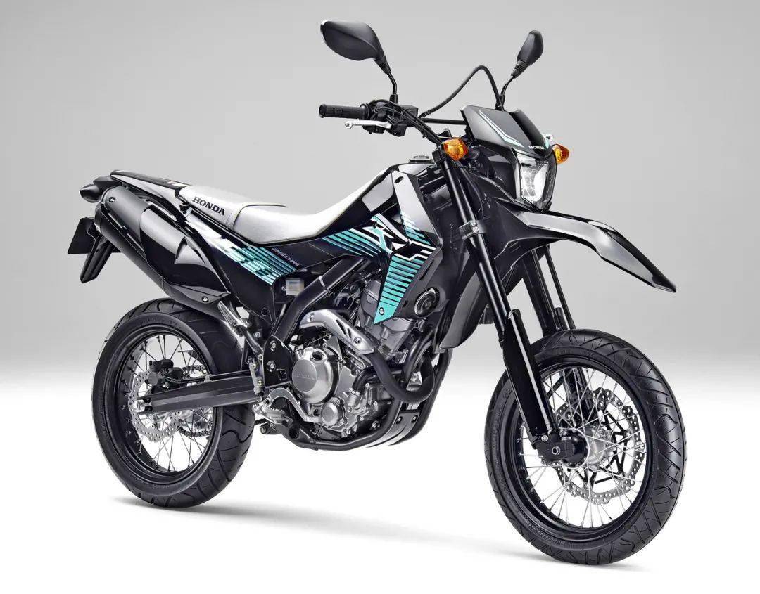 到了 2012 年,Honda 公開了同平臺(tái)之下延伸而來的公路越野版(也稱之為滑胎) CRF250M(本土版的工廠編號(hào)與 CRF250L 同為 JBK-MD38)。與越野版的 CRF250L 相比,CRF250M 換裝了前后 17 英寸的輪框,更大直徑的前剎車碟(293 mm vs 256 mm),以及有著一個(gè)低了 20 mm 的座位高度(855 mm vs 875 mm)。