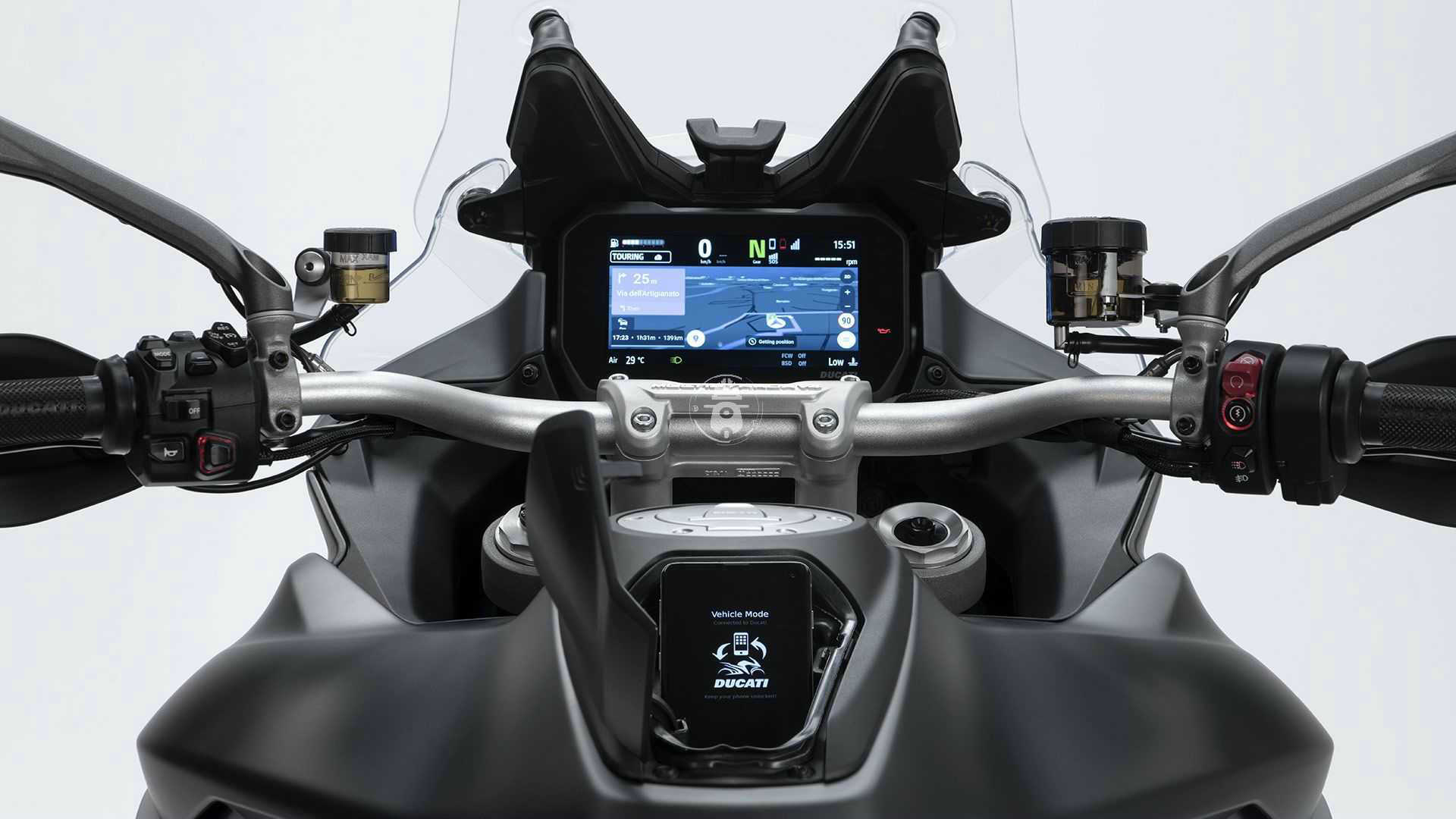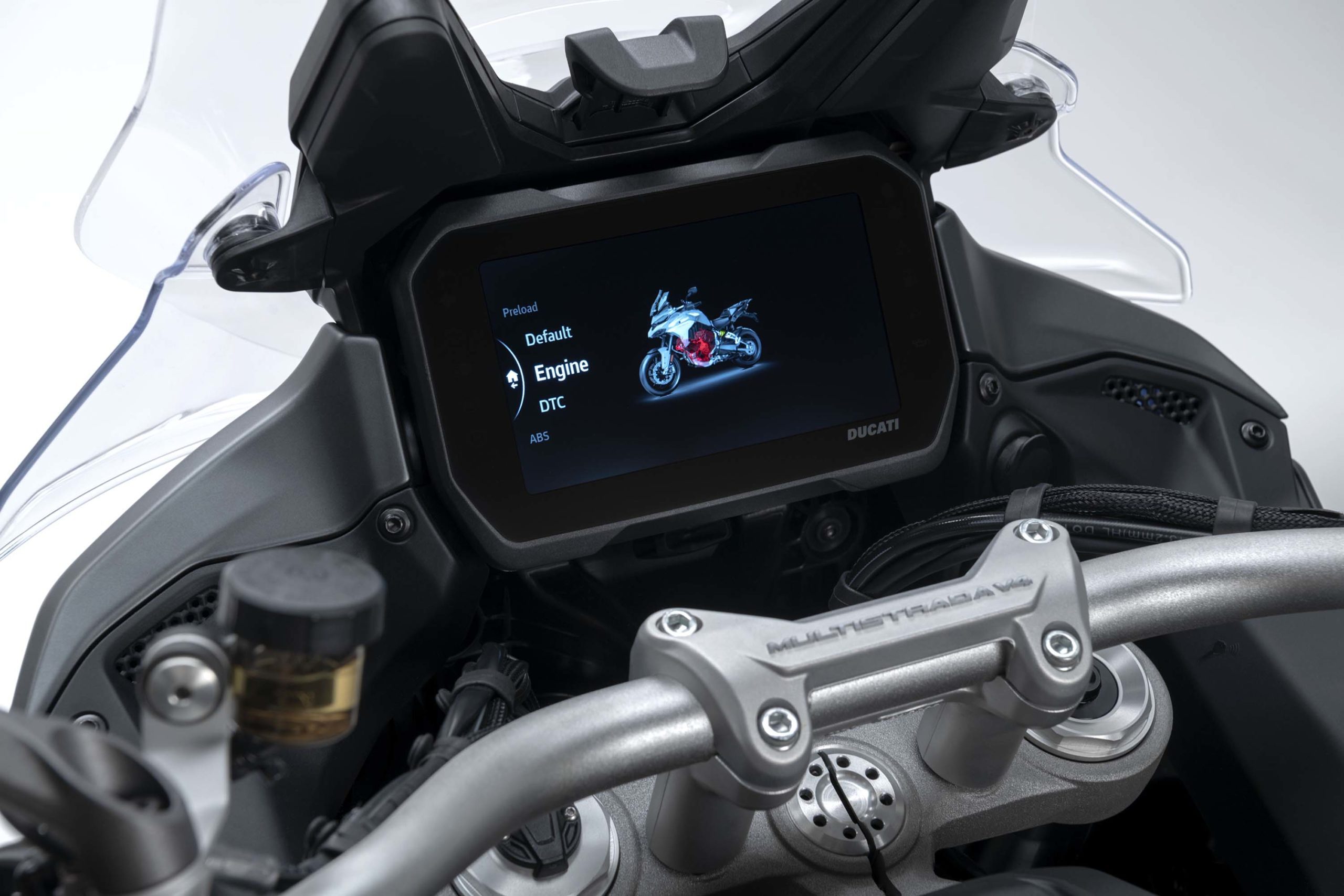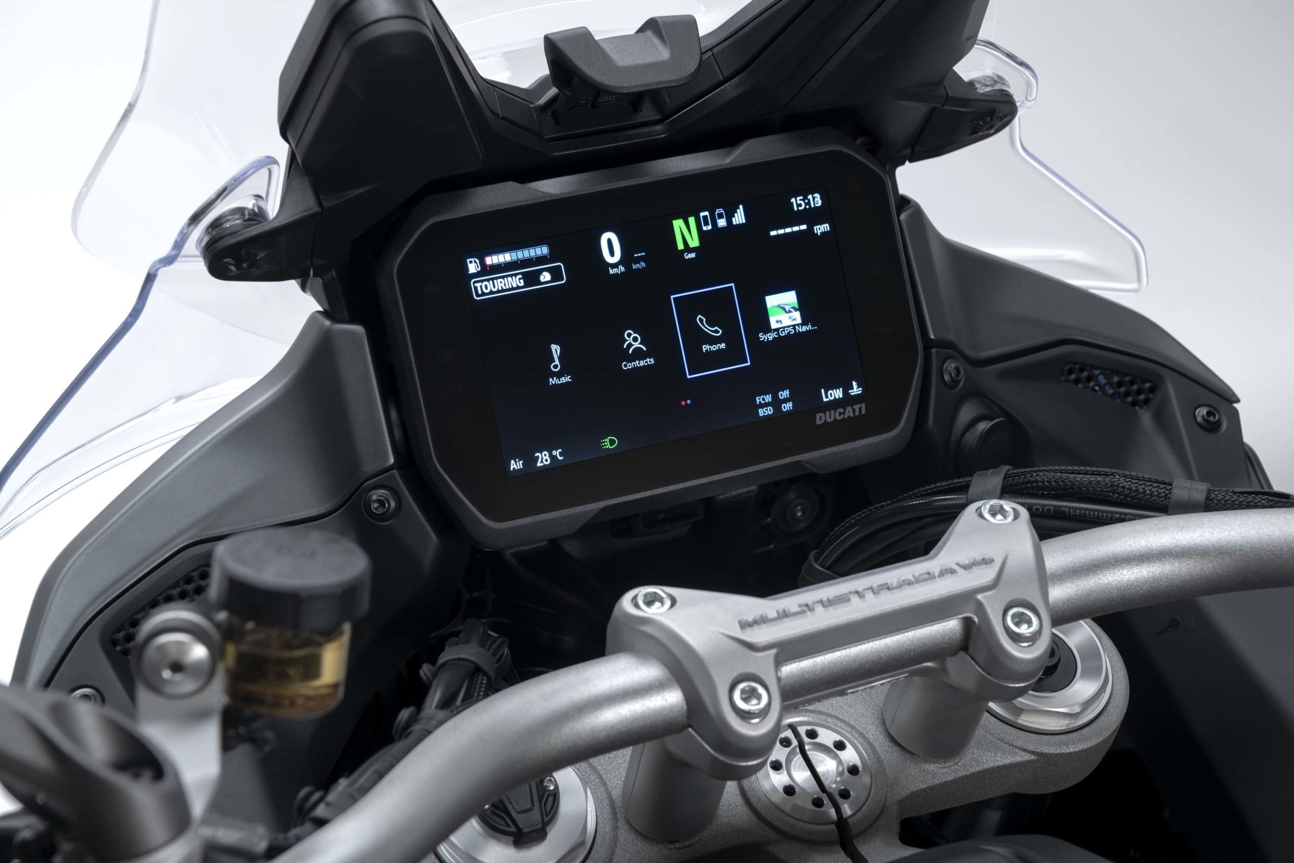 杜卡迪長(zhǎng)期以來(lái)一直在使用Multistrada系列展示其最新的電子配置,這一次也不例外。Multistrada V4配備有新的5英寸彩色TFT顯示屏,具備Ducati Connect智能手機(jī)連接功能。