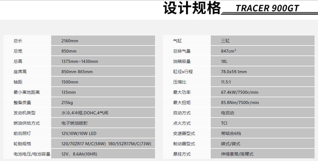 最核心的動(dòng)力部分卻掉了鏈子,雅馬哈Tracer 900 GT,搭載與“扭力大師MT-09”同平臺(tái)的CP3發(fā)動(dòng)機(jī),看似沒有毛病。但是該車國外版本的動(dòng)力數(shù)據(jù)是84.6kW(115PS)/ 10,000rpm,87.5Nm/8,500rpm,與MT-09保持一致。國內(nèi)在售的MT-09也沒有被閹割動(dòng)力,但是Tracer 900 GT國內(nèi)版本動(dòng)力被閹割了,最大功率67.4kW/7500rpm,最大扭矩85.8Nm/7500rpm,功率輸出少了17.2kw(23.4Ps)。再回頭看13.98萬的售價(jià),這個(gè)價(jià)格你還覺得香嗎?