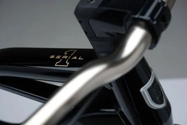 Serial1的誕生是為了致敬1903年哈雷戴維森推出的首款摩托車,整體造型設(shè)計(jì)采用了弧形及流線型元素,看起來(lái)相當(dāng)?shù)娜岷?。通體白色的輪胎配上黑色輪轂,形成了強(qiáng)烈對(duì)比。仿皮質(zhì)復(fù)古坐墊像是把人拉回了自行車剛剛開(kāi)始流行的年代。