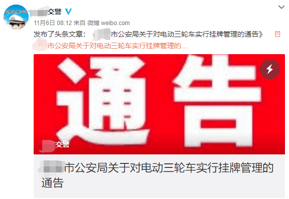 核心提示:近日,又一交警官方平臺(tái)發(fā)布最新消息:自2021年1月1日起,電動(dòng)三輪車必須經(jīng)注冊(cè)登記或備案取得牌證、購(gòu)買第三者責(zé)任保險(xiǎn)方可上道