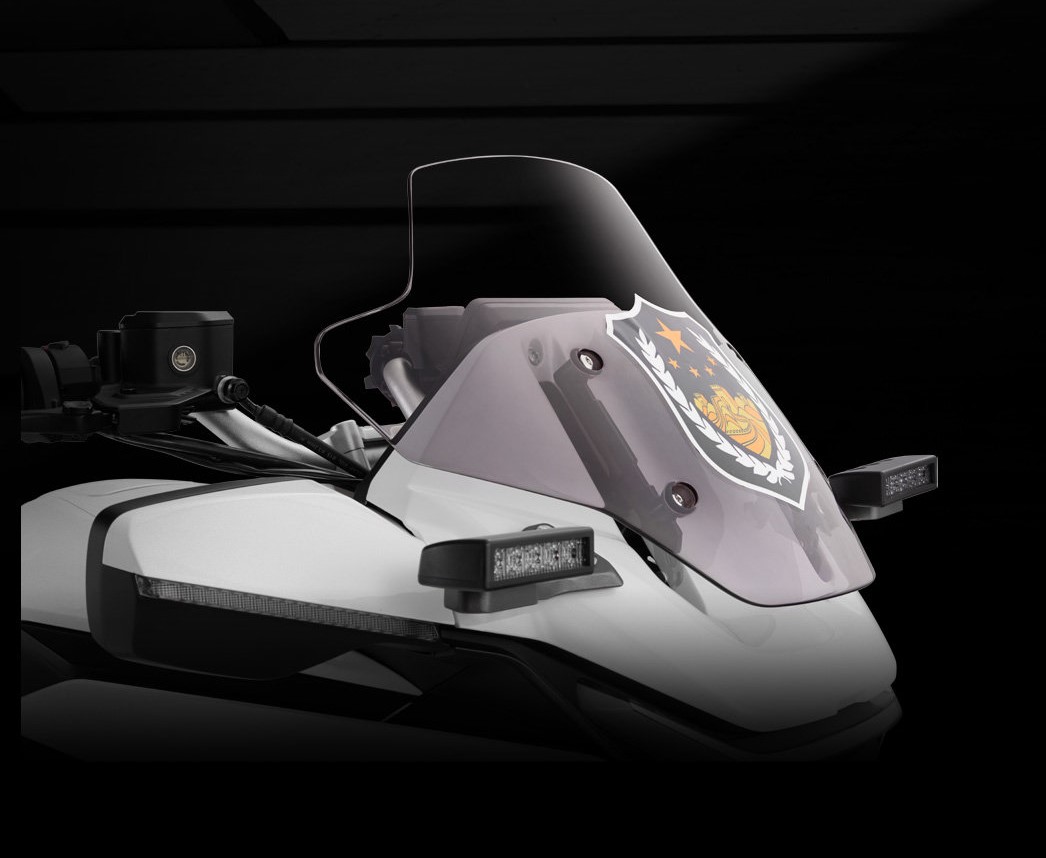 類似國(guó)賓650的后視鏡集成了轉(zhuǎn)向燈功能,作為警用車型在車頭和防摔杠上分別安裝了一對(duì)射燈,后期的民用版可能給會(huì)取消這種設(shè)計(jì),風(fēng)擋面積很大但是高度一般,民用版應(yīng)該會(huì)有更大的風(fēng)擋配置。