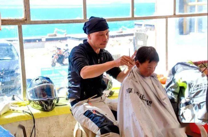 我們?cè)?qǐng)兩位發(fā)型師騎手阿諾、歡哥一同進(jìn)藏,在西藏文部南村為當(dāng)?shù)夭孛窭戆l(fā)。