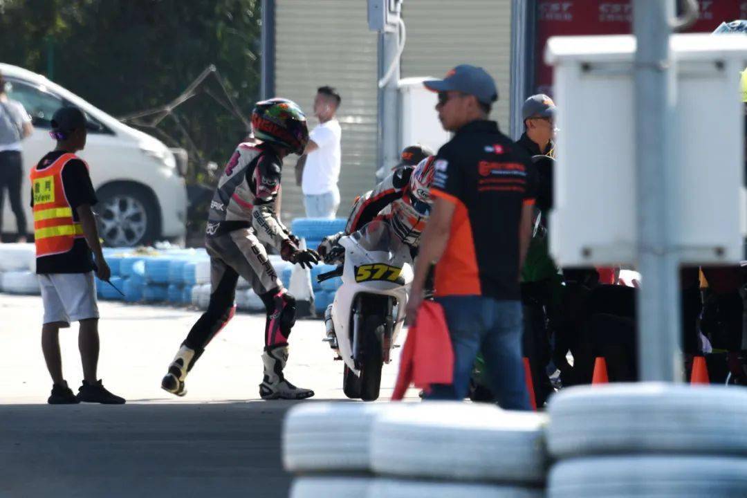 比賽進行了大約 30 分鐘后,10 號車的詹駿浩在與多臺 Ninja 糾纏了幾圈后、在 T3 摔倒,賽車的部分重要部件損毀,被迫提前退出了比賽。隨后,22 號車的慕容志釗在 T12 尾彎之前的小 S 形賽道上、與對手發(fā)生了擦碰而摔倒,但仍能重返賽道、繼續(xù)比賽。
