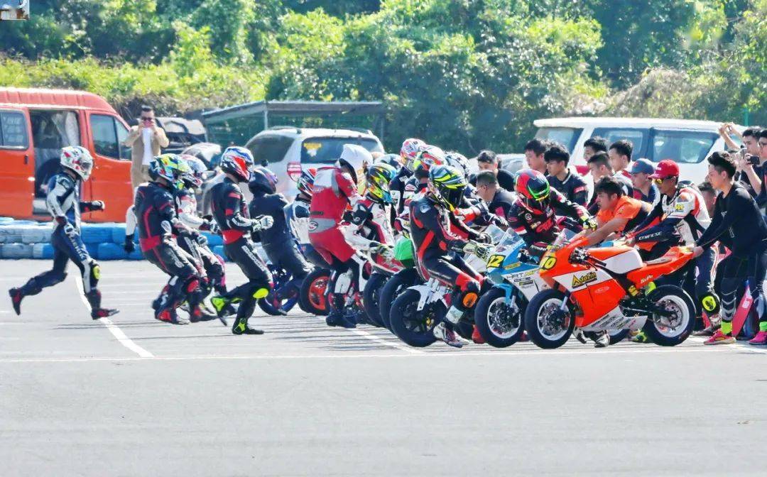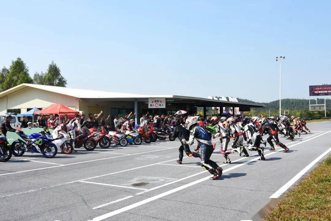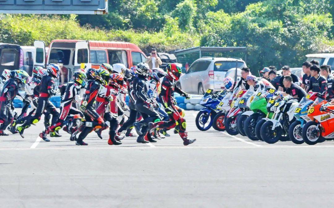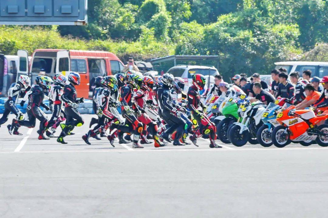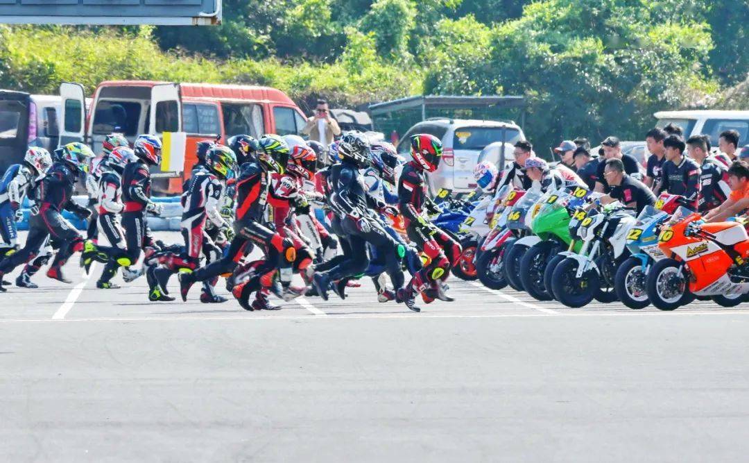 比賽采用了與 FIM EWC(Endurance World Championship 世界耐力錦標賽)相同的利曼(Le Mans,也稱之為勒芒)式的跑步發(fā)車,這是公路摩托車耐力賽里的一個標志性畫面。當起跑線前的屏幕上跳過了 2:00.00、綠燈同時亮起的時候,比賽正式開始、車手們蜂擁跑向自己的賽車。