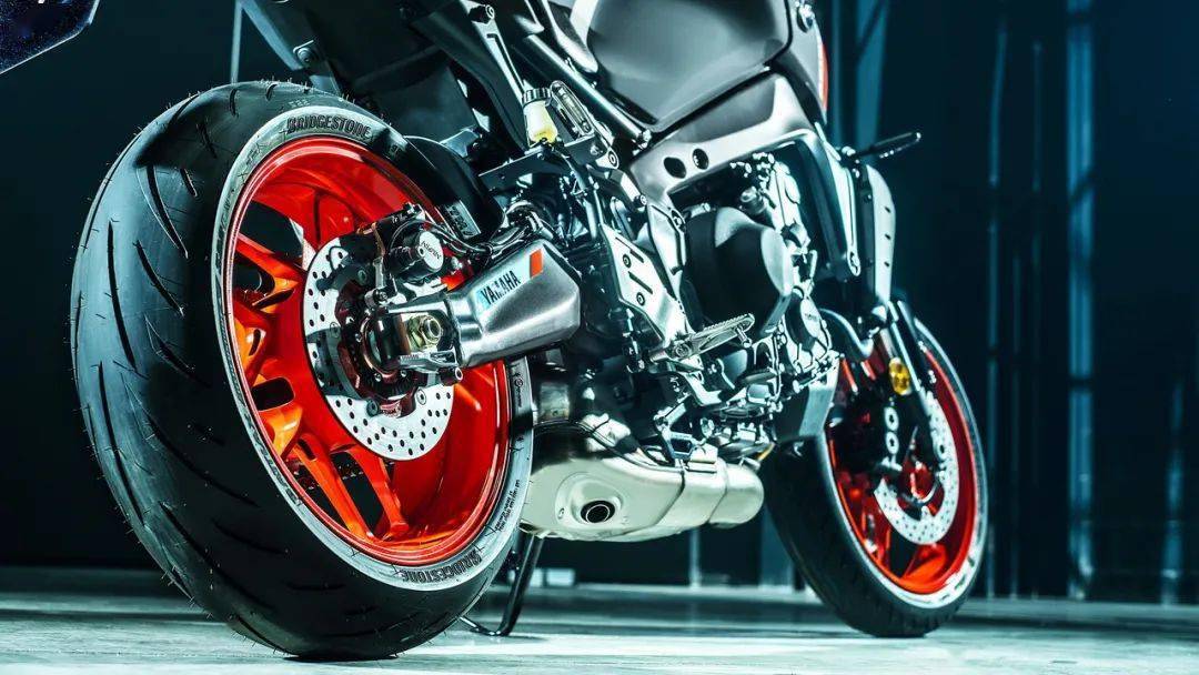 新 MT-09 采用一對(duì)十幅式前后輪框,廠方稱、這是他們有史以來最輕的輪框(量產(chǎn)車型)。