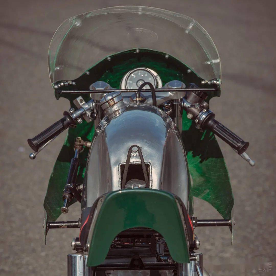 發(fā)動機是搭載的著名的諾頓750雙缸。這也是當(dāng)年比賽用車的常規(guī)制作方式。自己做車架,發(fā)動機多數(shù)是外購的。