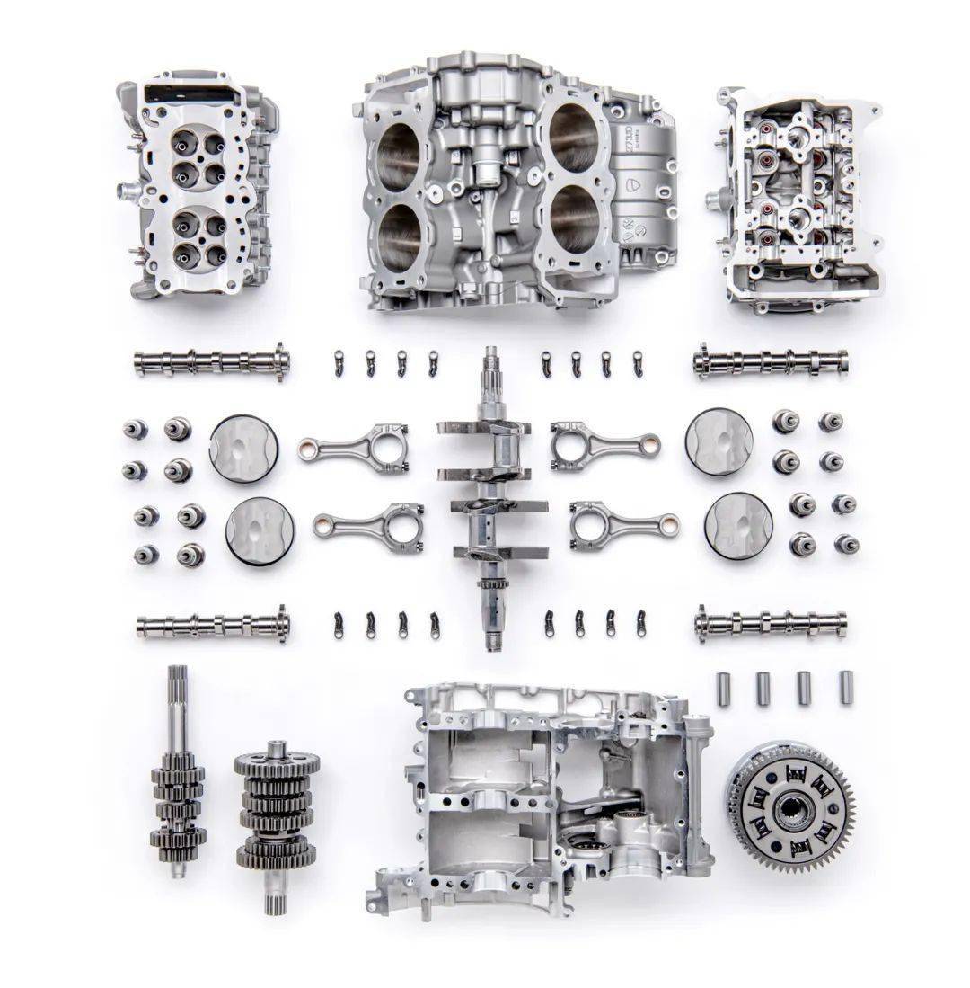 在開發(fā)理念上,杜卡迪表示,他們一直專注于開發(fā)先進(jìn)技術(shù)、并由此去提供一個卓越的騎行體驗,所采用的每一種技術(shù)解決方案,需要確保在該領(lǐng)域有著真正的獨(dú)特性能。遵循著這樣的路線,雖然 Granturismo V4 與 Desmosedici Stradale(超級跑車 Panigale V4 所使用的發(fā)動機(jī))共享著整體的布局和技術(shù)方向上的選擇,但全新的 Granturismo V4 內(nèi)部經(jīng)過了大量的修改,以滿足不同場景之下的適用性。而兩者之間的一個較大的區(qū)別,就是在可靠性和耐用性方面的調(diào)整:缸徑、排汽量更大了,但峰值動力被調(diào)低了,而配汽系統(tǒng)(汽缸頭)的保養(yǎng)間隔則達(dá)到了 60,000 公里。