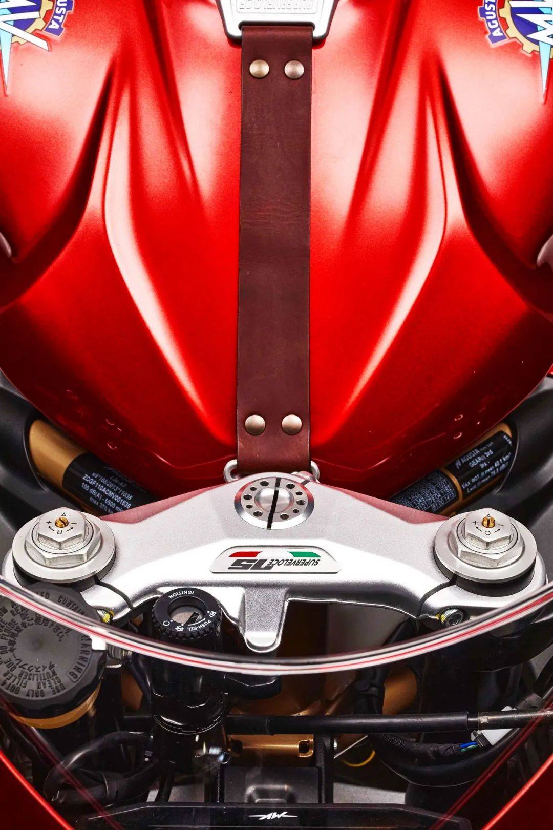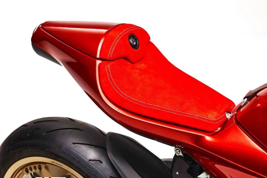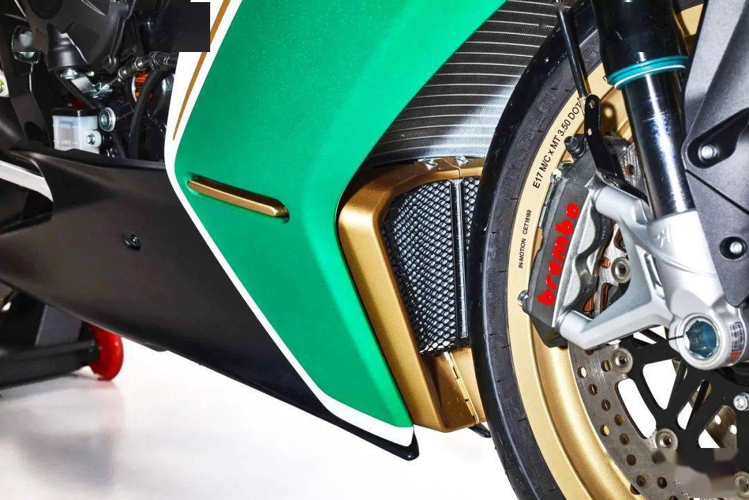 而 Superveloce 75 Anniversario 七十五周年限量版紀(jì)念車(chē)型,采用了一個(gè)意大利國(guó)旗印象的三色圖案,顯眼的紅色與金色相襯,標(biāo)配了 Arrow 的排汽系統(tǒng)、和對(duì)應(yīng)的 ECU 數(shù)據(jù)包,上三星(上前叉三角臺(tái))刻有一個(gè)特定的編號(hào),并附送證書(shū)。此外,還有部分出廠前的選裝件、供客戶(hù)在下單采購(gòu)時(shí)一并挑選。