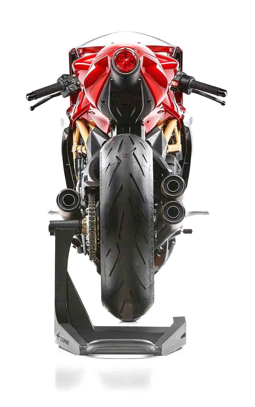 外觀風(fēng)格方面,Superveloce 造型的靈感來(lái)源于 MV 奧古斯塔上世紀(jì)六、七十年代獲得過(guò)佳績(jī)的 GP 賽車(chē),車(chē)架采用了鋼管式的設(shè)計(jì),叉芯口徑為 43 mm 的 Marzocchi 倒立式前叉,Sachs 的單筒后減震。