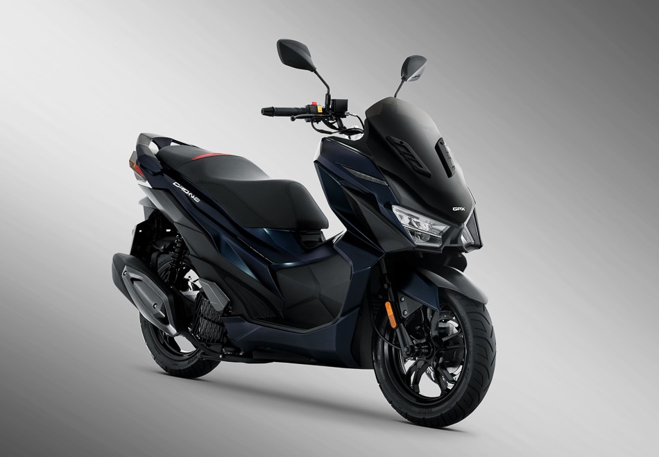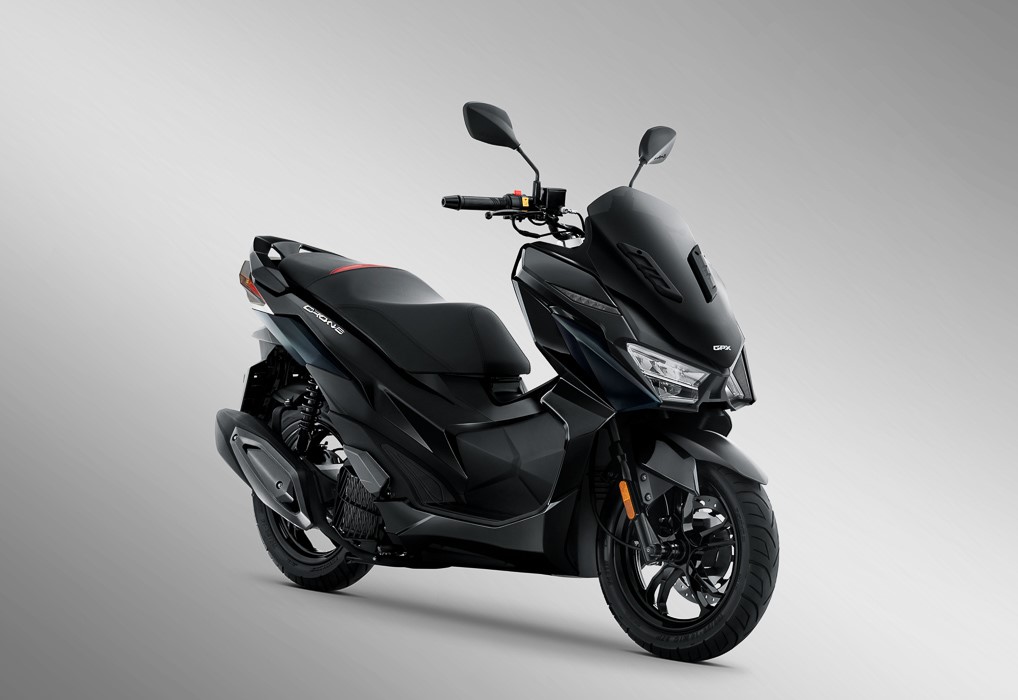 SYM的同款車型Jet X也將很快發(fā)售,GPX Drone配備了SYM的150cc兩氣門單缸發(fā)動機,亮點配置包括完整的LED照明系統(tǒng),LCD電子屏幕,CBS前后盤式制動器,Smartkey無鑰匙啟動系統(tǒng)等,GPX Drone是在GPX自己的泰國工廠生產(chǎn)。