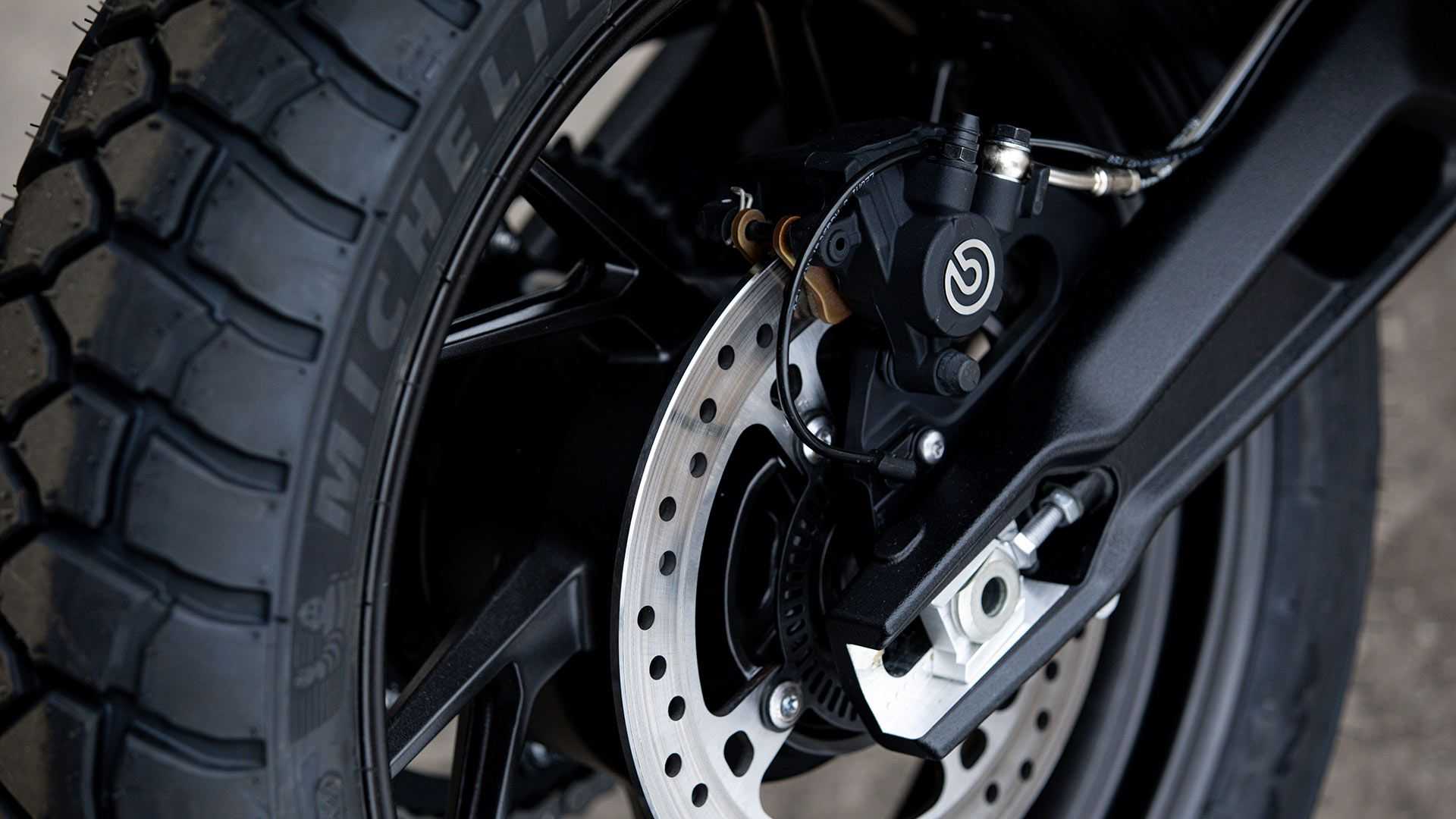 底盤方面,配備有45毫米的Marzocchi倒立式前叉,180mm行程;預(yù)載可調(diào)式Marzocchi中置后避震,170mm行程。19英寸鑄造合金前輪,Brembo Stylema四活塞卡鉗,和一對320mm制動盤,而17英寸后輪則裝有一個單活塞Brembo卡鉗,和255mm單制動盤。輪胎由Michelin Anakee Adventure提供,另有雙通道ABS防抱死系統(tǒng)。