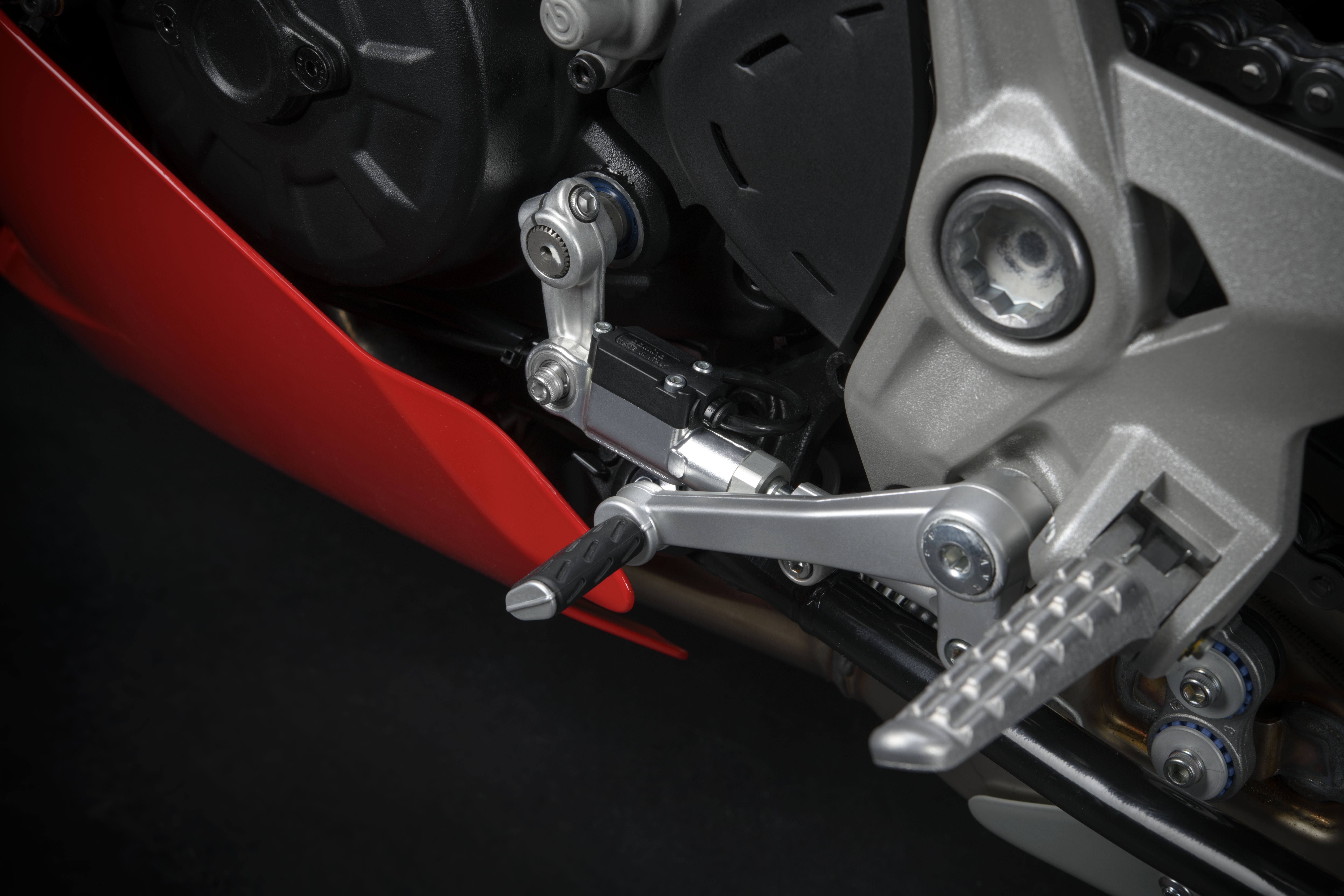 制動方面,配備320mm雙前盤+Brembo M4-32徑向式四活塞卡鉗,是兩種SuperSport 950型號的標準配置,后245mm單圓盤+雙活塞卡鉗也是如此。除了轉(zhuǎn)彎ABS之外,制動系統(tǒng)還配備了一個自動排氣的徑向泵,與離合器桿的液壓系統(tǒng)相匹配。