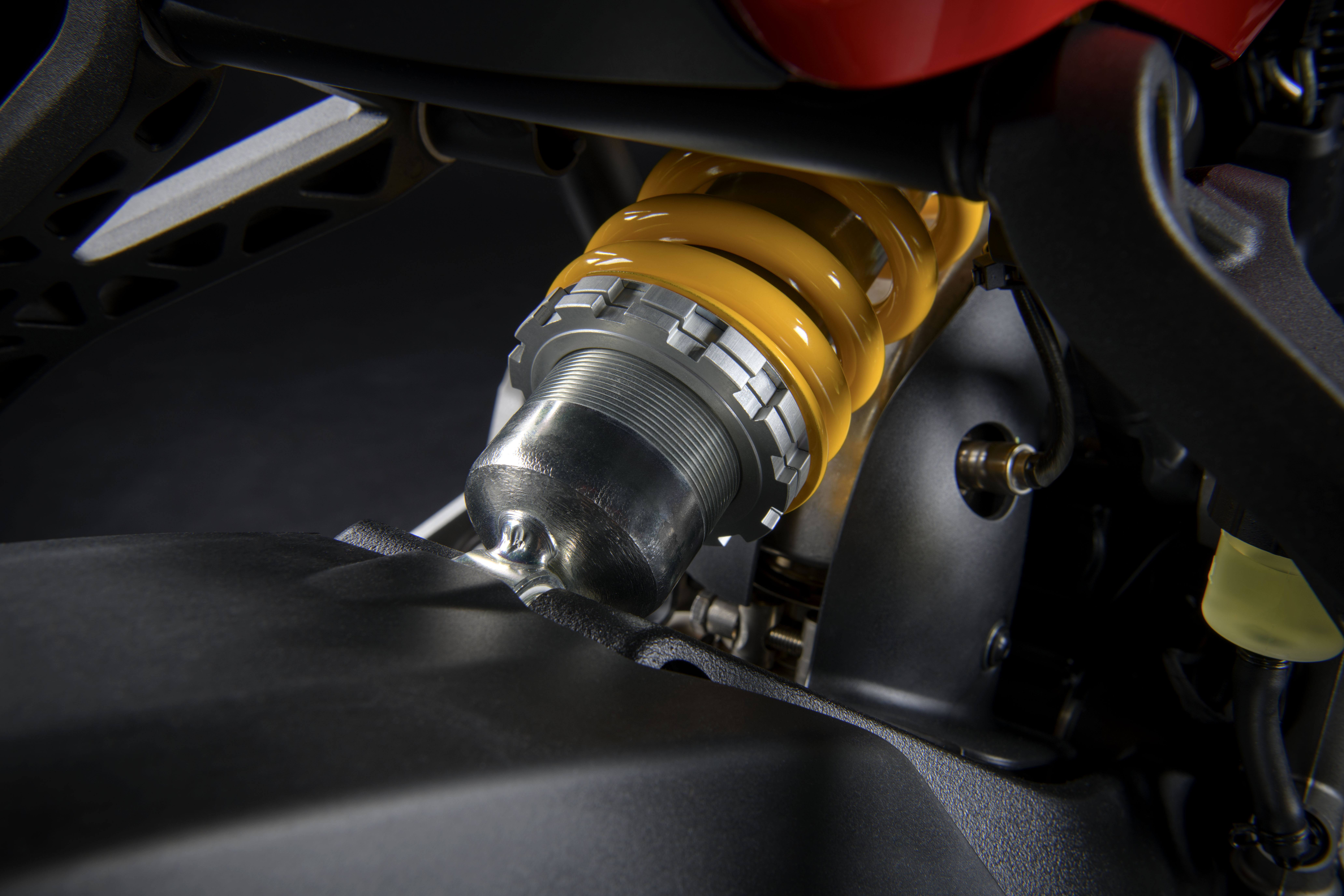 底盤與老款車型相似,單側(cè)搖臂,格柵車架以發(fā)動機作為承重元件。懸架也沒有變化,基本型號SuperSport 950使用了完全可調(diào)的43毫米Marzocchi倒叉,以及預(yù)載和回彈阻尼可調(diào)節(jié)的Sachs后減震器。S型號采用Öhlins的48毫米倒叉和后減震器,兩者均具有完全可調(diào)節(jié)性。