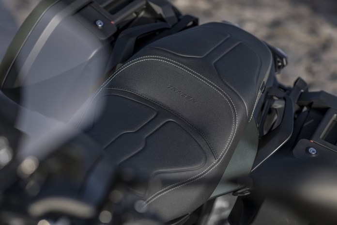 特殊設(shè)計(jì)的座椅,可在旅行時(shí)為騎手和乘客提供更好的乘坐舒適感。座椅采用對(duì)比色縫線的雙材料蒙皮,以及不同的泡沫密度區(qū)域,并采用對(duì)比縫線和壓花“ Tracer”徽標(biāo),比以前的座椅更具高檔設(shè)計(jì)。