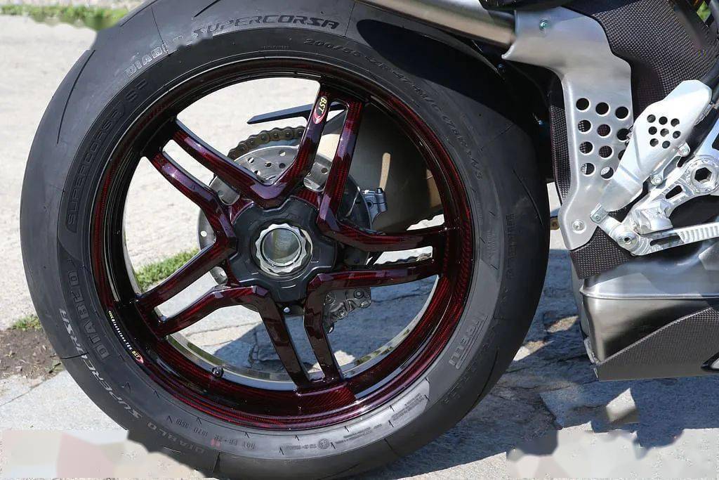 電子可調(diào)的 Öhlins 前叉固定于全新設(shè)計(jì)的上下三芯。Öhlins TTX36 減震器和轉(zhuǎn)向阻尼都將由專用 ECU 控制。搭配的紅色涂裝處理的碳纖維輪圈有助于降低簧下質(zhì)量和轉(zhuǎn)動(dòng)慣量。
