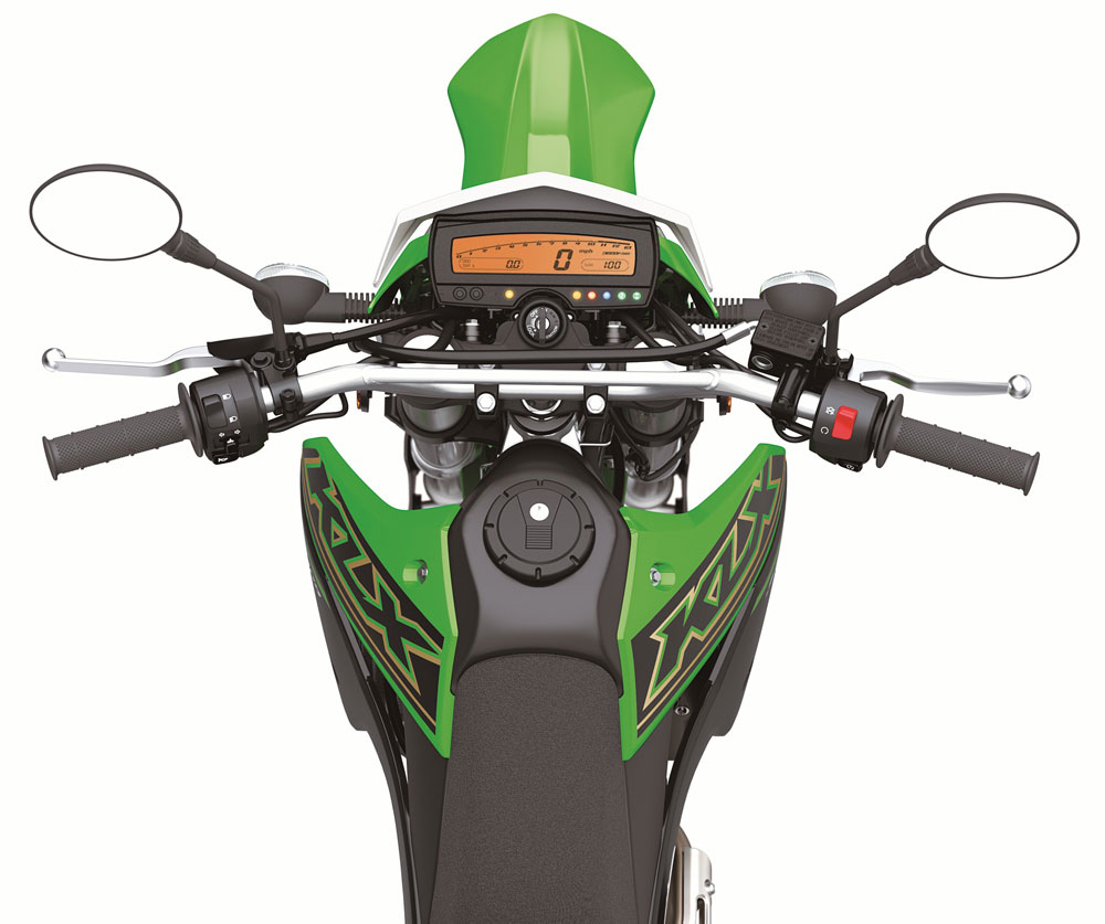 KLX300SM摩托車采用窄車把風格,增加了激進的造型,使騎手處于放松和直立的位置,以實現(xiàn)輕松控制的騎行,站立的騎行位置也更靠近摩托車的中心線,以獲得最佳的騎行姿勢。