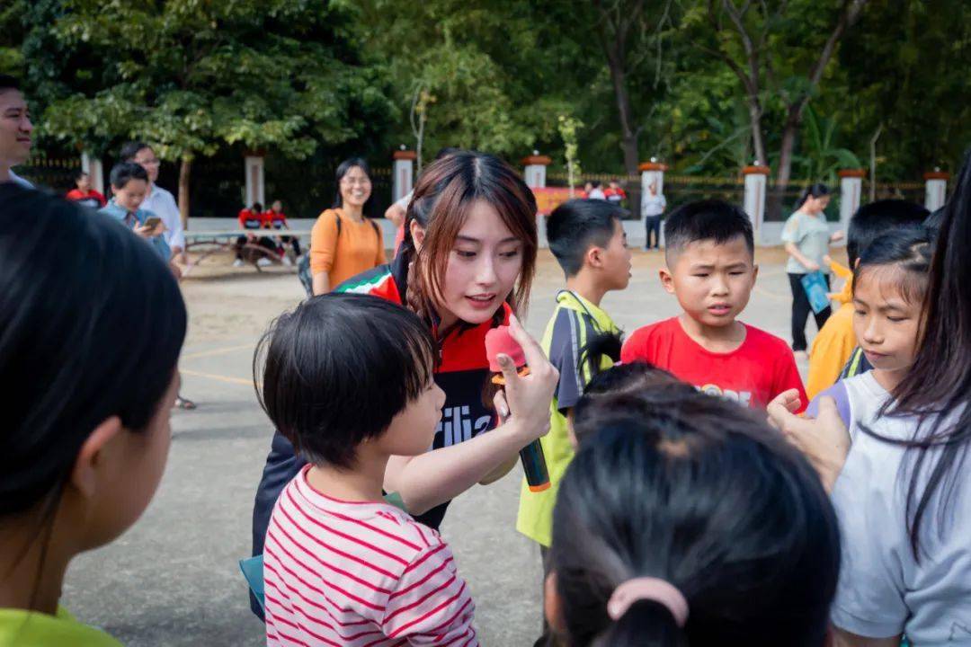經(jīng)過簡短的參觀和交流,我們和孩子們一起參加鄉(xiāng)村運動會。簡單的道具,簡單的規(guī)則,你一點點的關(guān)懷就能換來陽光燦爛的笑容。你的一絲絲幫助就能給這些天真稚嫩的孩子帶來歡樂。