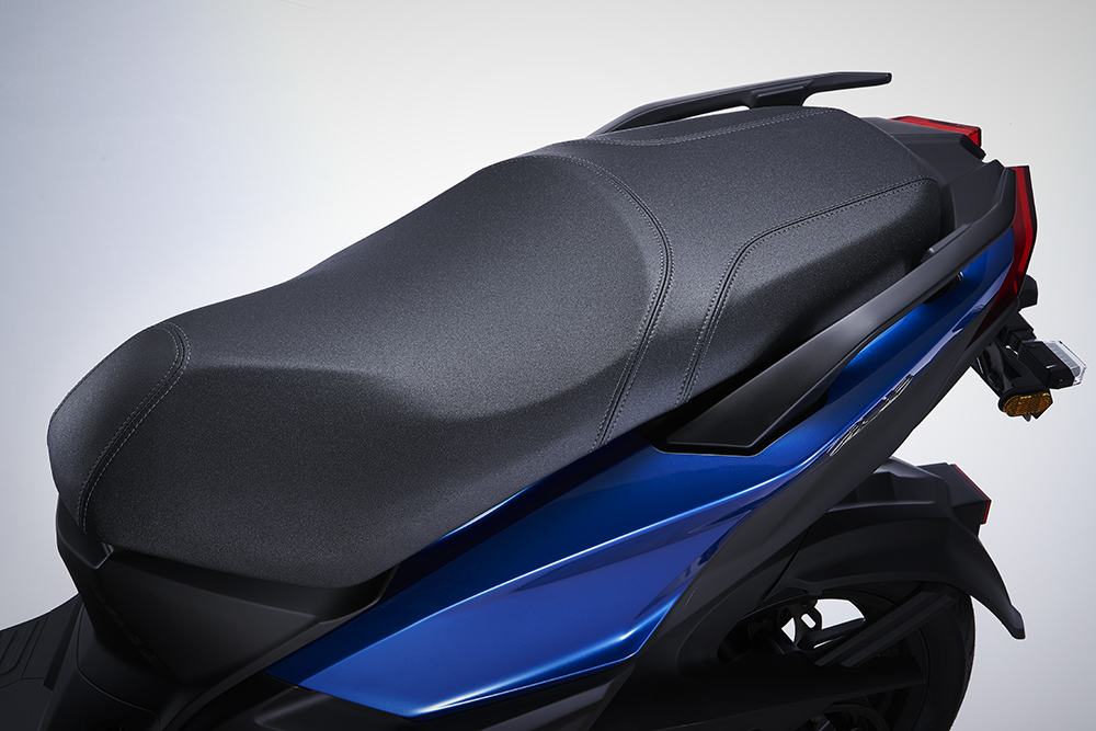 坐墊設計貼合車身線條,同時采用了部分防滑面料。
