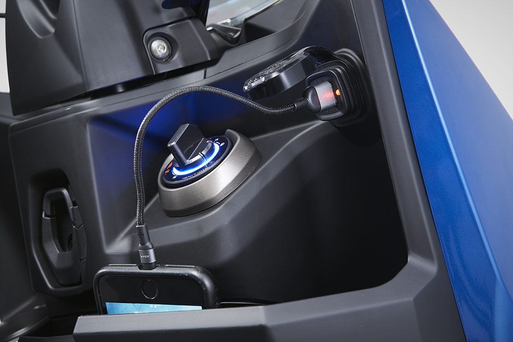 在無鑰匙啟動旋鈕的上方,有配備防水蓋的USB充電接口,給手機充電比較方便。