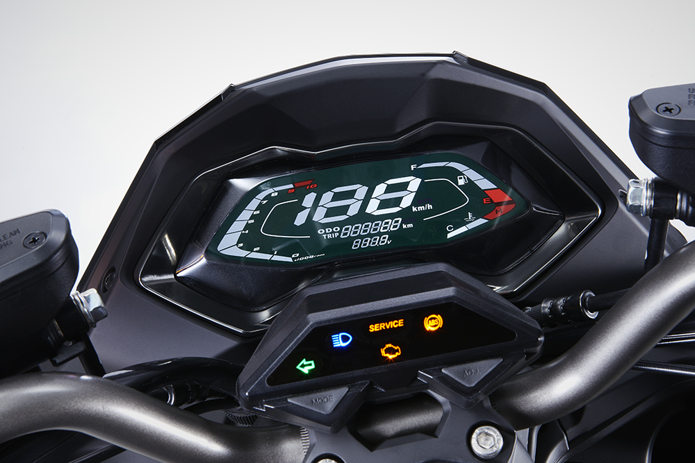 LCD液晶儀表科技感不錯,比較特別的是狀態(tài)燈的部分,為了儀表盤的整體性,被分出來安裝在車把上。
