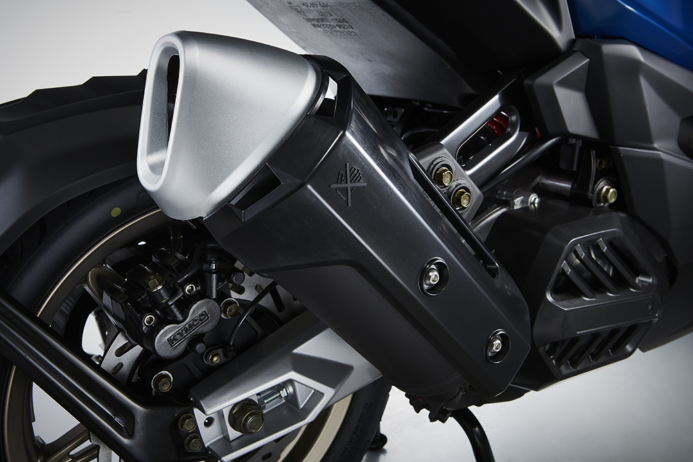 KRV外觀上給人的第一印象是硬朗運動,與目前光陽的小排量踏板所采用的的圓潤風格截然不同,銳利的線條構(gòu)成了時尚運動的輪廓,富有肌肉感的側(cè)整流罩一路延伸至車尾,顏值這一塊拿捏的非常到位。