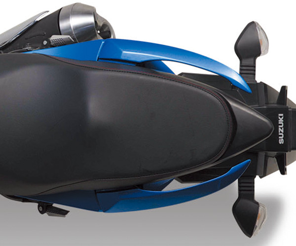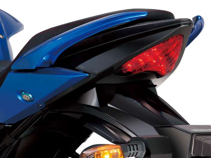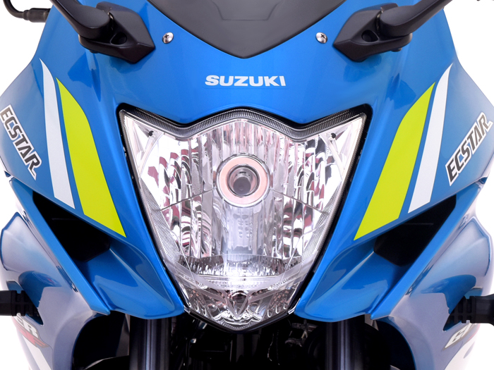 類似GSX的前臉,廠家宣稱是“豹臉”設(shè)計(jì),依然是鹵素光源,前臉部分比較有看點(diǎn)的是,采用了類似GSXR1000的進(jìn)氣風(fēng)道裝飾,只是尺寸小了很多。