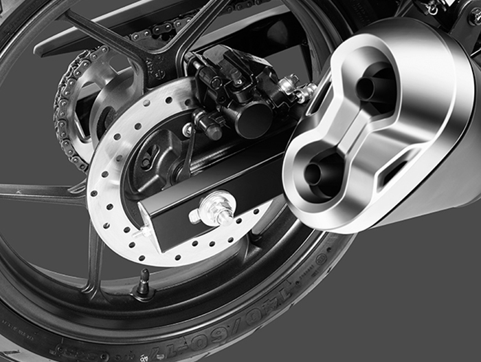 雖然是單缸發(fā)動機(jī),但是雙出的排氣真的很唬人。